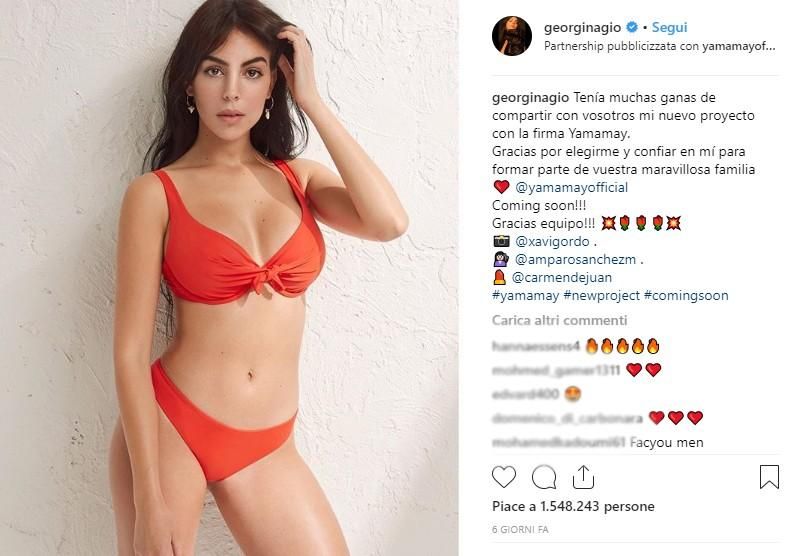 Georgina Rodriguez, compagna del campione della Juve, Cristiano Ronaldo, è stata scelta da un noto brand di intimo come testimonial della sua linea di costumi da bagno.