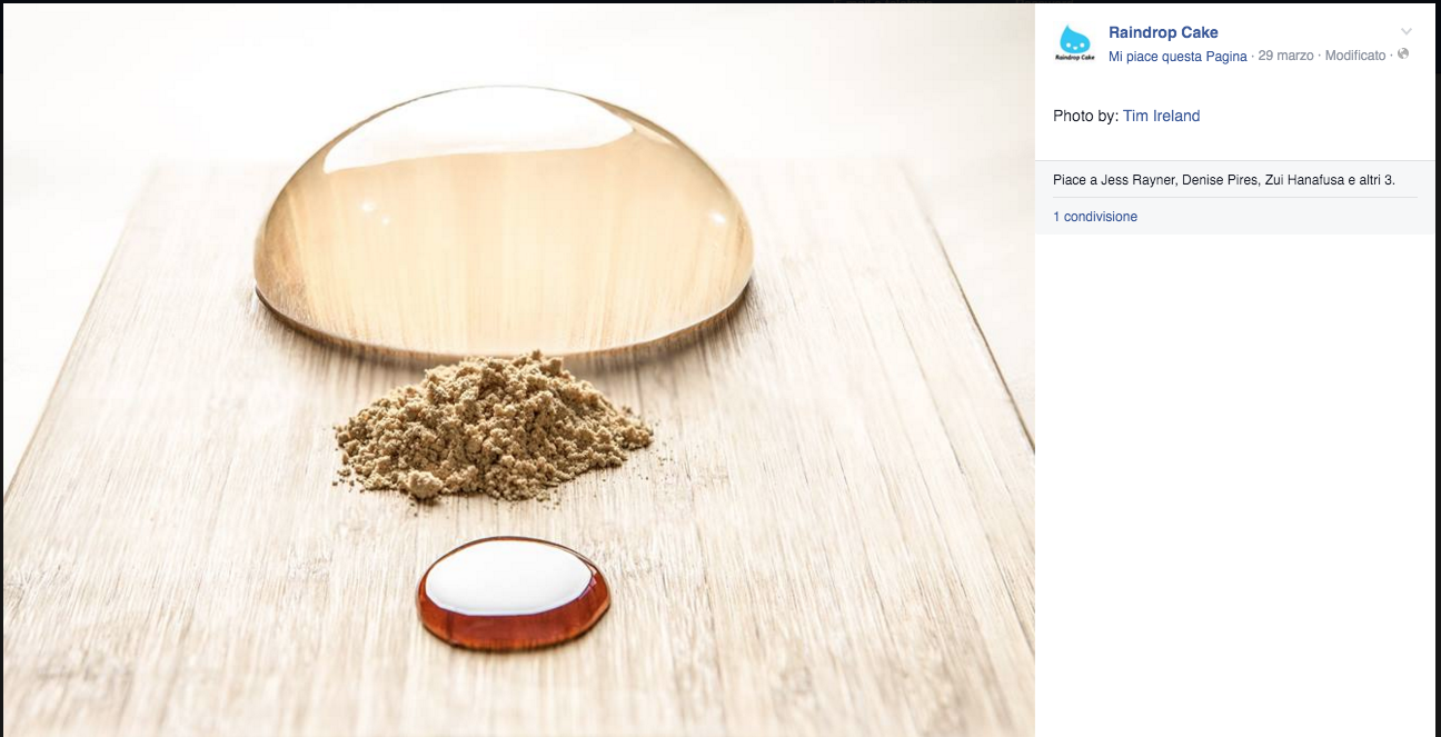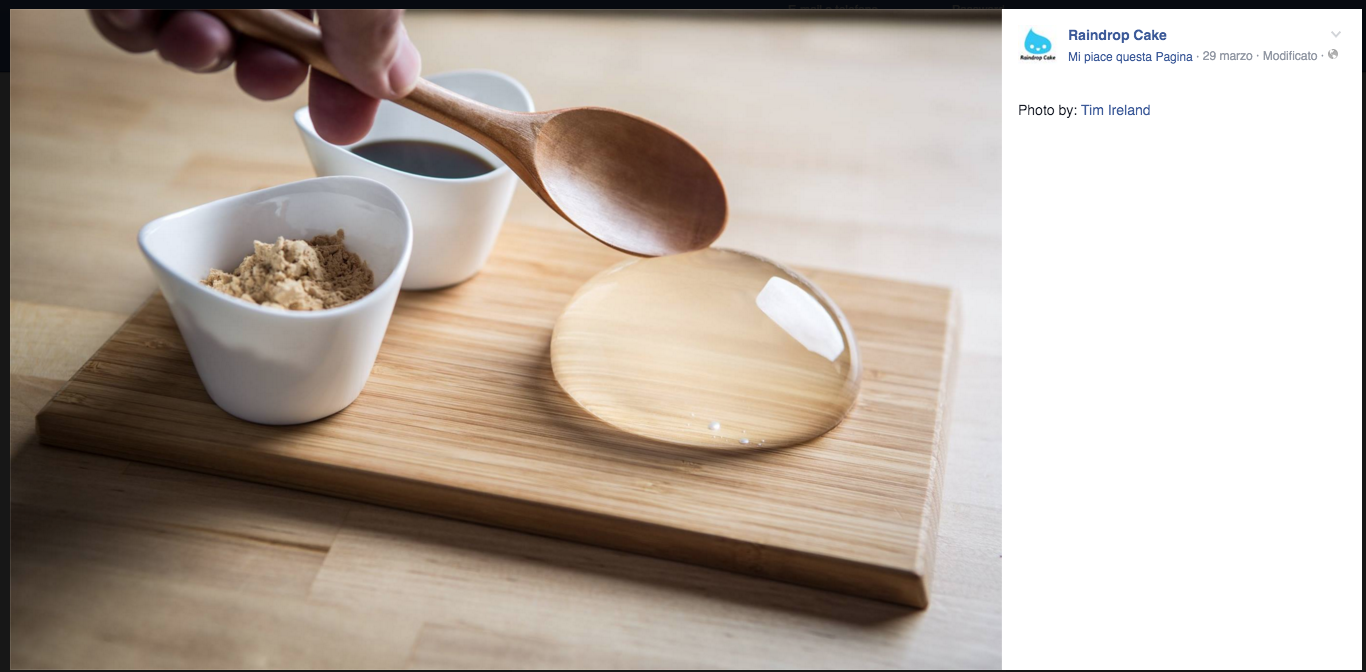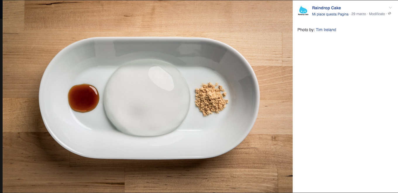 Si tratta infatti di una torta a base di acqua e alghe agar agar. È la “Raindrop Cake”, scenografica creazione dello chef Darren Wong (le foto che vedete nella gallery sono tratte dalla sua pagina Facebook).