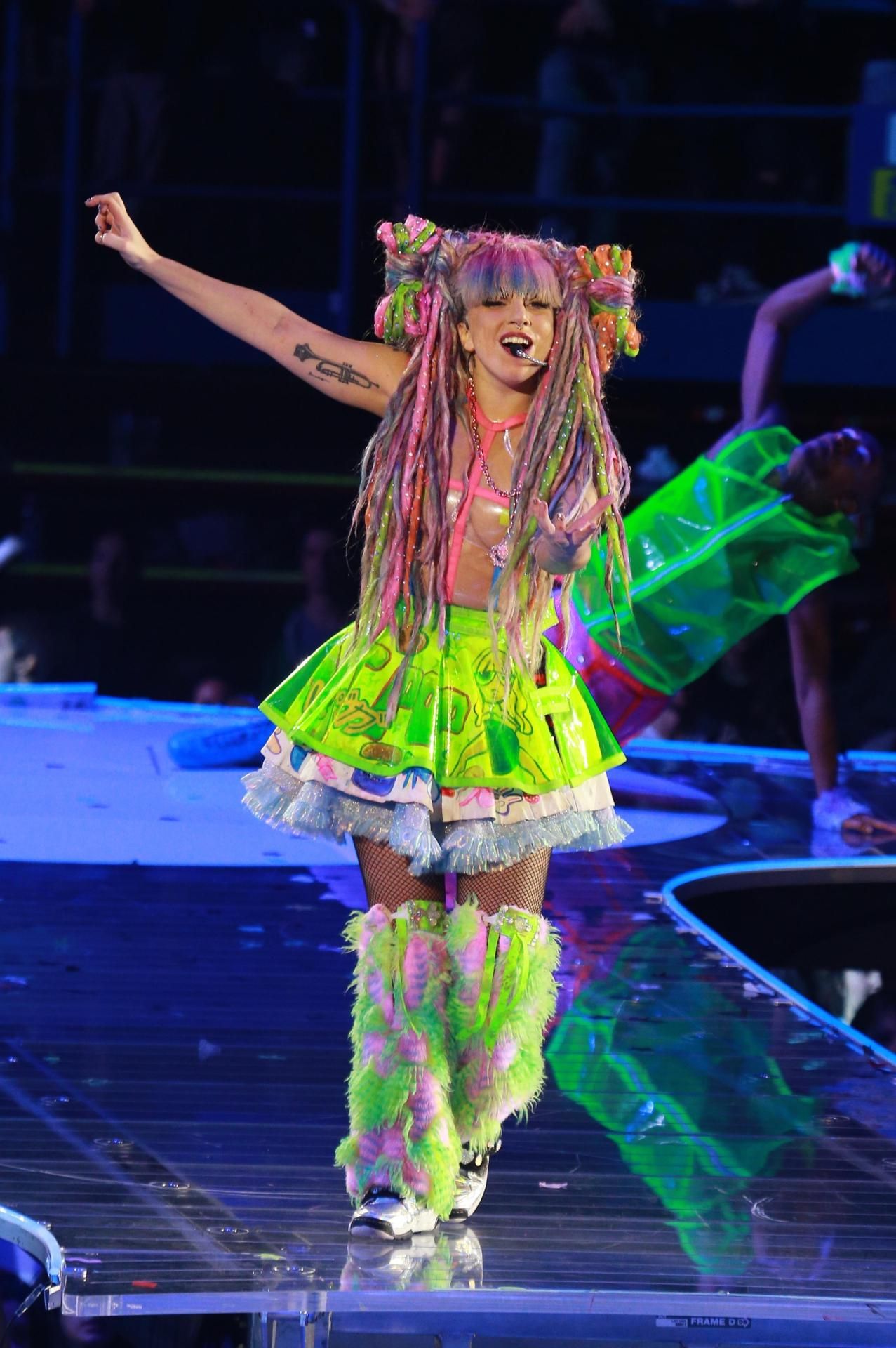 E avventurosa Gaga è stata anche nel look, le ha provate davvero tutte, da Maria Antonietta, con tanto di parrucca, al look moicano, passando per gli omaggi alla storia della musica, come quello a David Bowie ai Grammy del 2016.