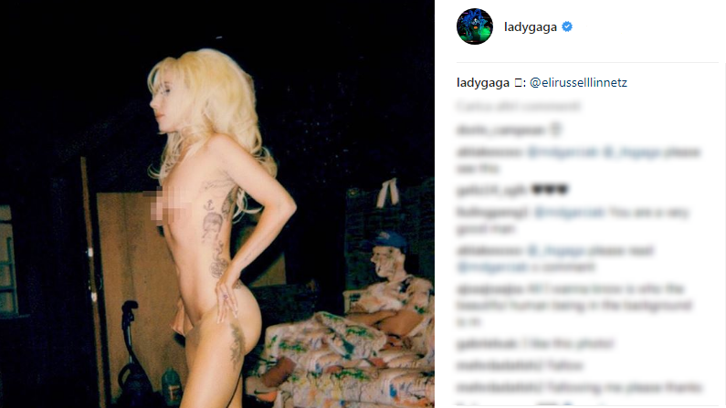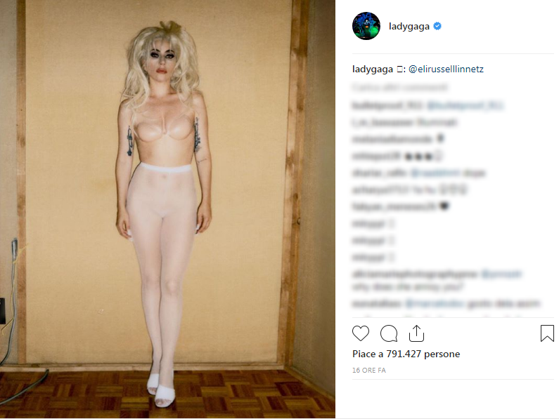 In uno scenario al naturale (sembra quasi un backstage) vediamo Lady Gaga muoversi indossando solo delle calze color carne e un minuscolo reggiseno. Gaga non ha offerto didascalie alle foto, ma ha voluto omaggiare l’autore: le immagini sono state scattate da Eli Russell Linnetz.