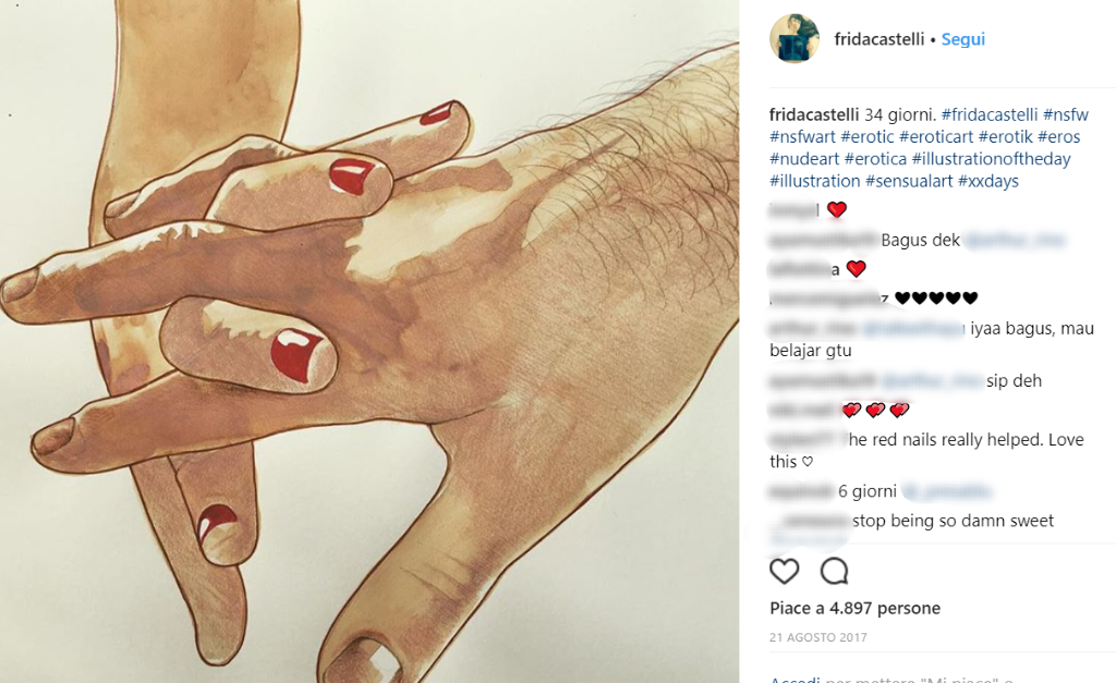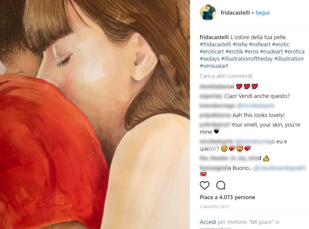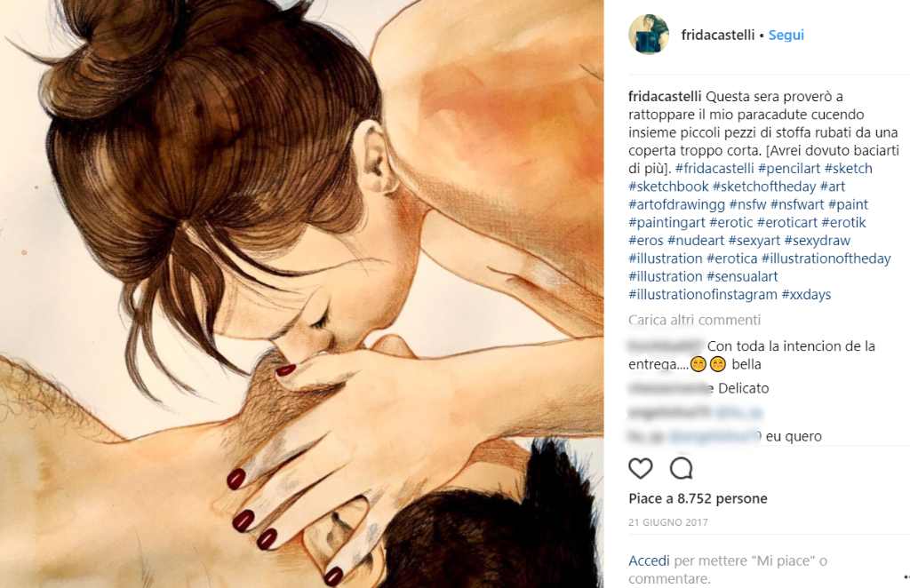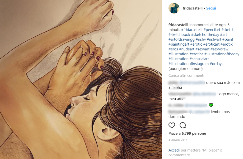 Frida Castelli è un’illustratrice milanese che ha scelto di mettere al centro di ogni suo disegno l’amore. E ha deciso di rappresentare il lato più fisico e carnale dell’amore.