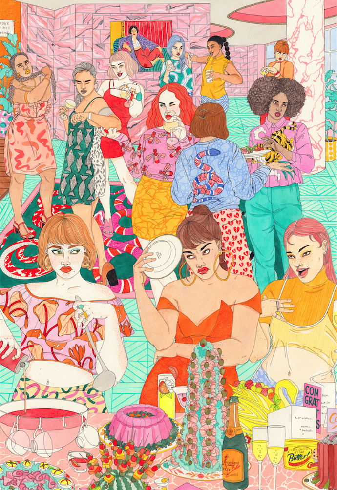 Le donne che vengono ritratte nelle illustrazioni di Laura Callaghan – giovane, ma già famosa illustratrice irlandese, emigrata a Londra – hanno delle personalità estremamente complesse, che le avvicinano incredibilmente alle ragazze “reali”: sono belle, ma insicure; alla ricerca di approvazione, ma annoiate; litigano, piangono, si divertono. Sono eternamente combattute tra il voler essere quello che desiderano, ma allo stesso tempo la società le imbriglia all’interno di standard di bellezza impossibili da raggiungere.