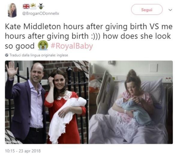 Sui social, dove si commenta qualunque avvenimento di spicco, c’è stato un vero tripudio di opinioni legate alla prima apparizione ufficiale del royal baby con famigliola al seguito. E dopo il toto-bebè di questi ultimi mesi, è partita una maratona fotografica in cui molte donne hanno condiviso le immagini che le ritraggono subito dopo la nascita dei loro pargoli. Naturalmente la battaglia è persa in partenza. La bella Kate riuscirebbe ad essere perfetta anche dopo tre ore di palestra nel bel mezzo del caldo d’agosto. Ma di sicuro un po’ di sana ironia non guasta mai.