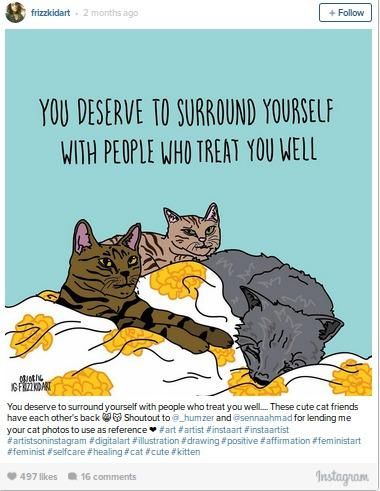 È questo il caso delle 10 illustrazioni che vi mostriamo oggi, opera dell’artista canadese Frizz Kid, al secolo Hana Shafi, che con pochi tratti accompagnati da efficaci affermazioni ha realizzato un progetto volto al benessere fisico (e mentale) delle donne che si trovano in una situazione di fragilità e difficoltà.