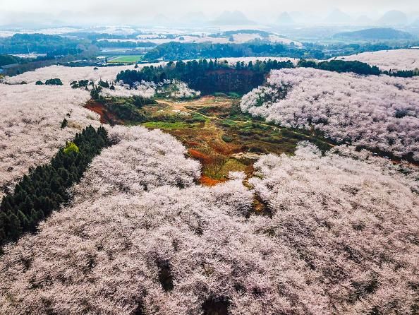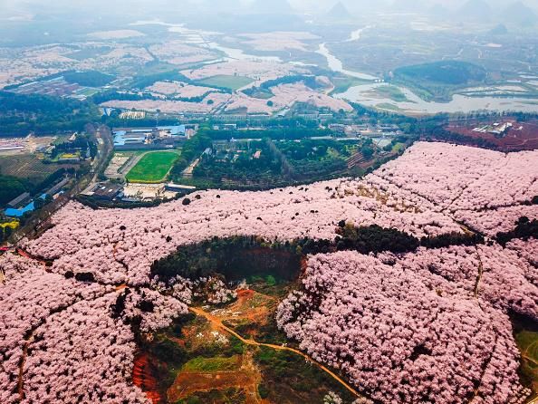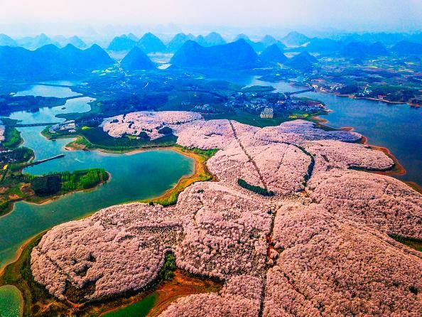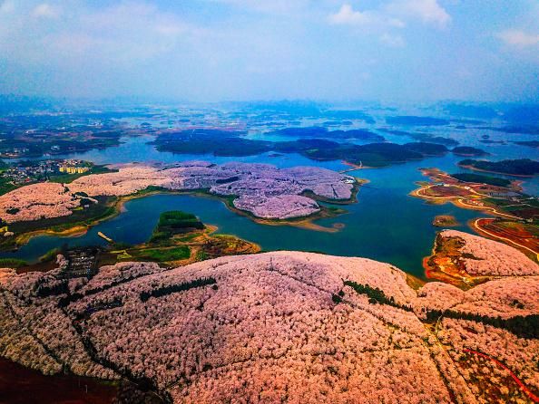 La provincia cinese di Guizhou, alle porte della città di Guiyang, ne è il perfetto esempio. Centinaia di ciliegi fioriscono dando vita a una distesa cromatica incredibile. Le colline cambiano colore e il panorama si trasforma.