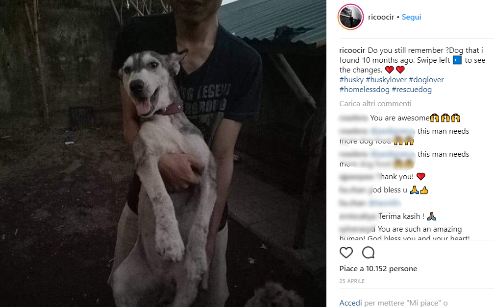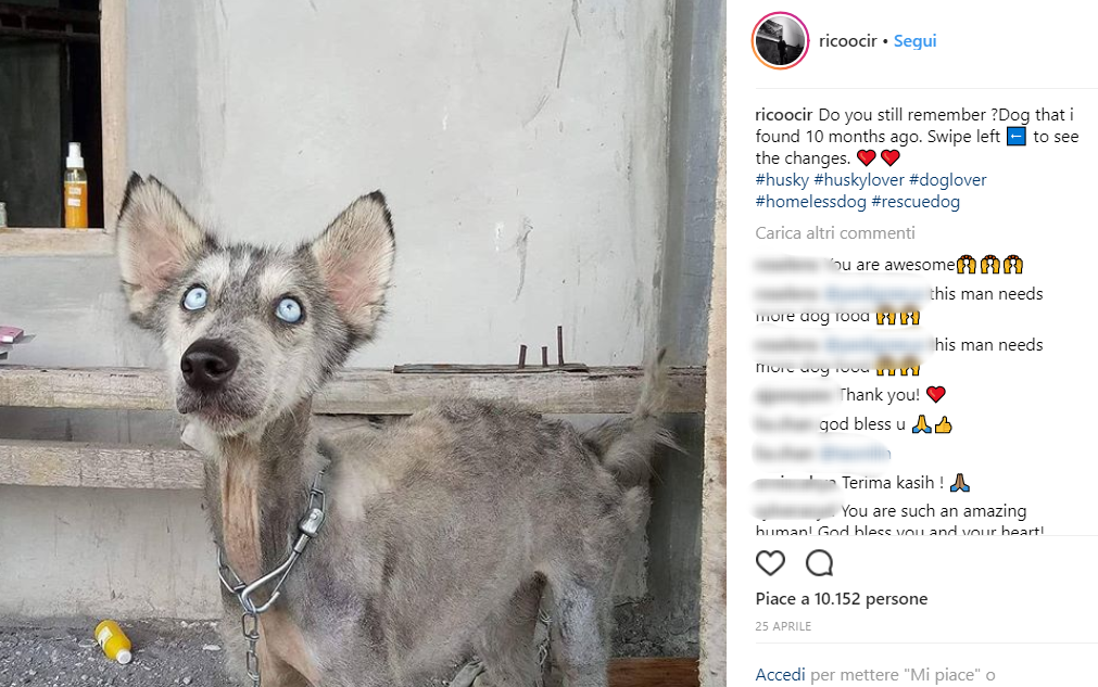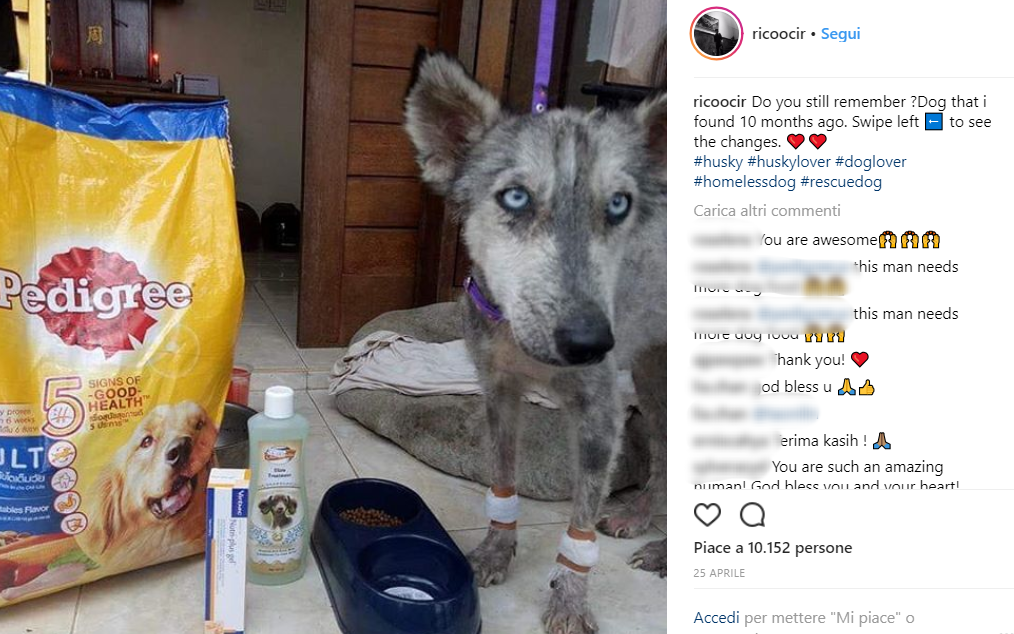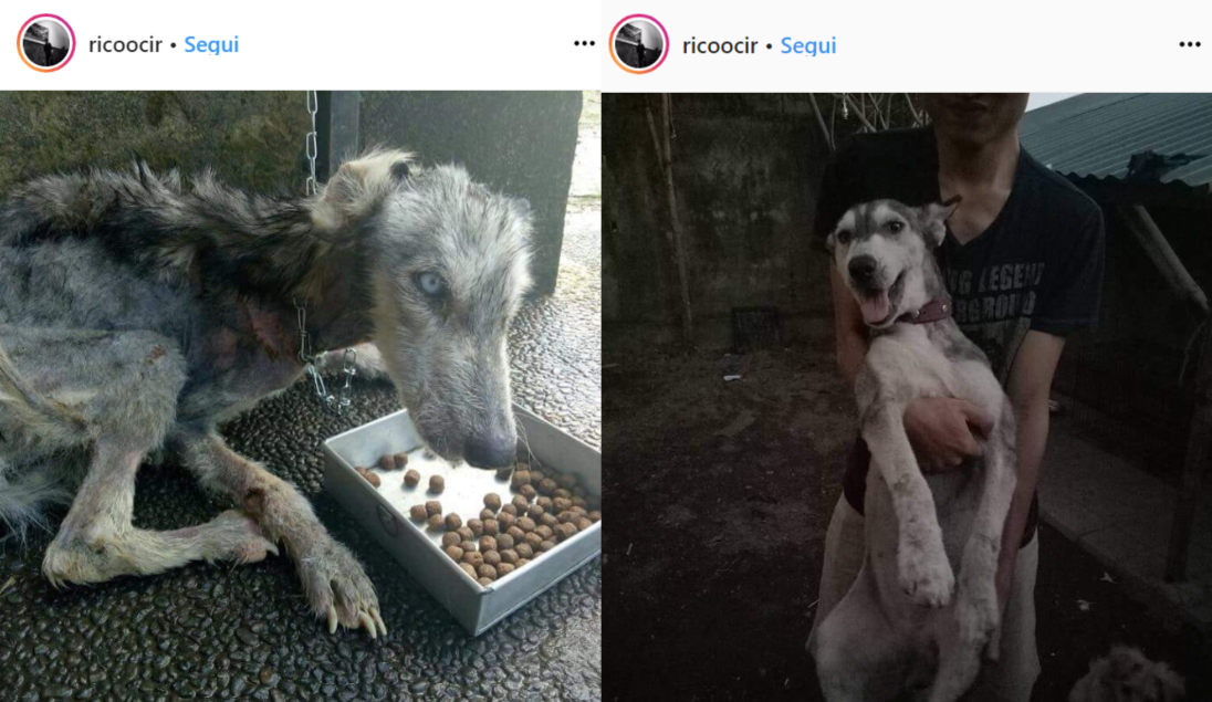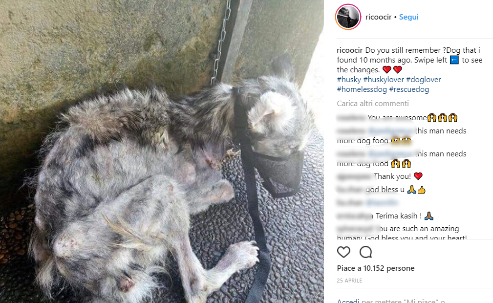 Il cane, ritrovato 10 mesi fa per strada a Denpasar (isola di Bali) era ridotto a uno scheletro. Denutrito e maltrattato era ridotto pelle e ossa.
