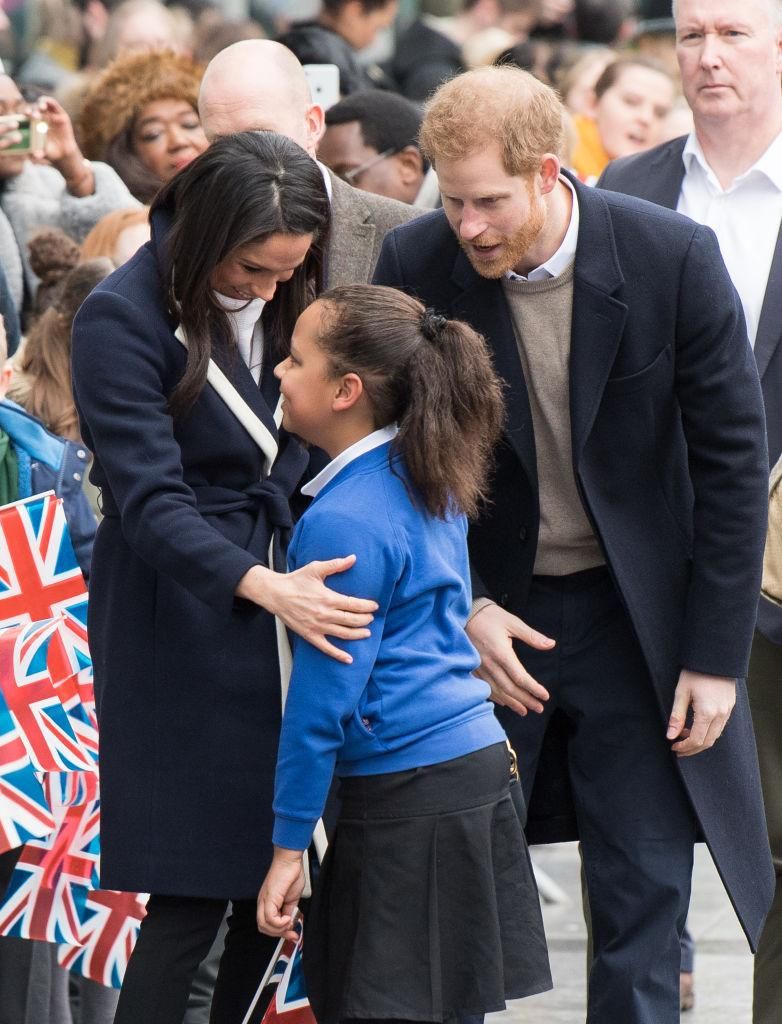 Meghan Markle abbraccia una bambina, sfidando il protocollo reale