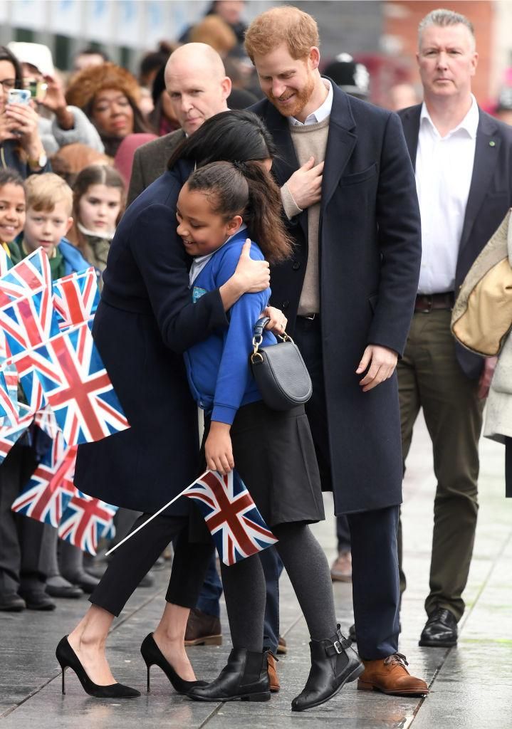 Durante una visita ufficiale, Meghan si è concessa un abbraccio con una bambina.