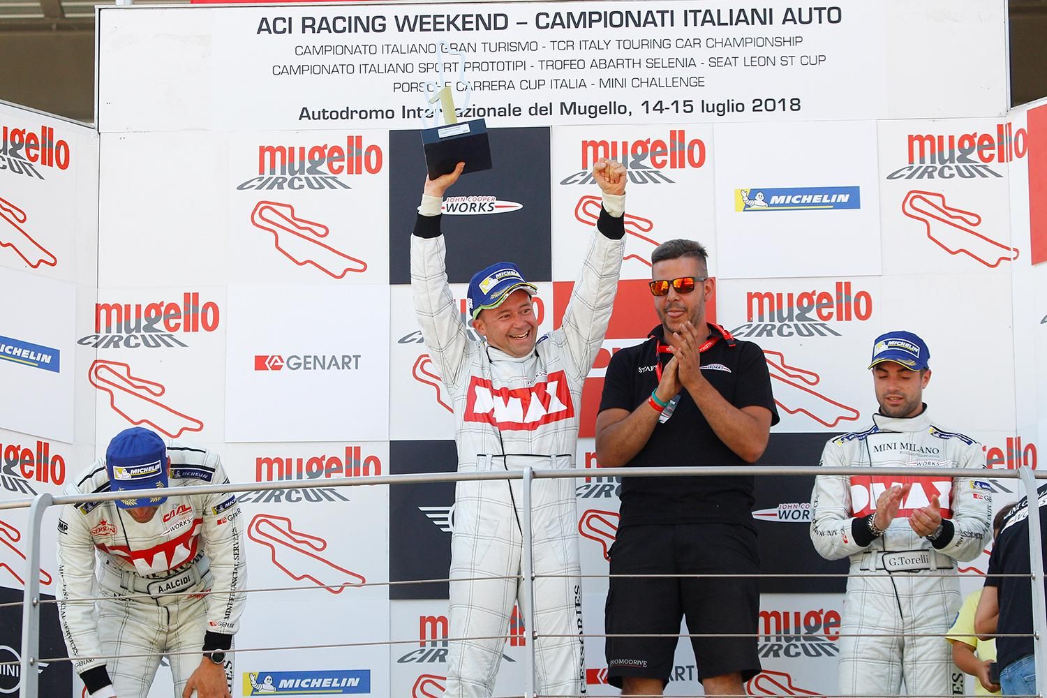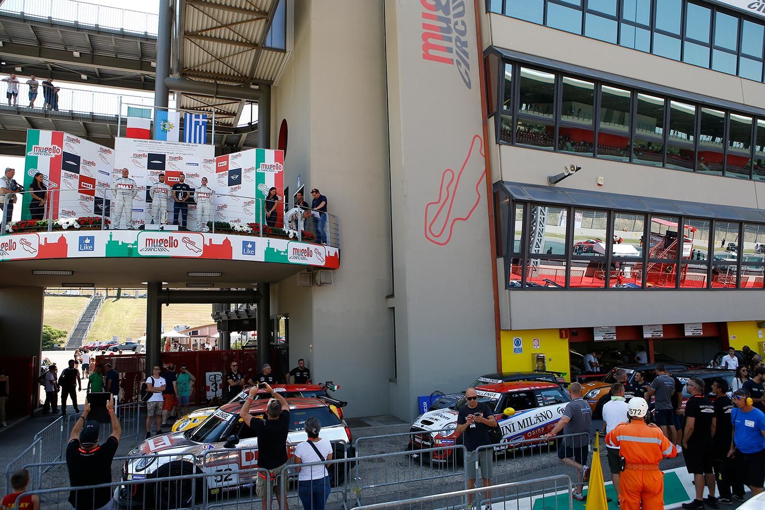 Sul podio del Mugello anche Tobia Zarpellon (Ceccato Motors by C.Z. Bassano R.T.) e il padrone di casa Gabriele Giorgi (Autoeur by Progetto E20), sostenuto da tantissimi tifosi. Nonostante l’arrivo dietro safety car per consentire la rimozione della vettura di Krasonis, fermo alla Bucine a pochi giri dal termine, la prima gara del monomarca di casa MINI ha regalato grandi emozioni con Massimo Ferraro (Melatini Racing) quarto al traguardo davanti al guest driver di MINI Italia Thomas Biagi e ad Alessio Alcidi (MINI Roma by CAAL Racing).