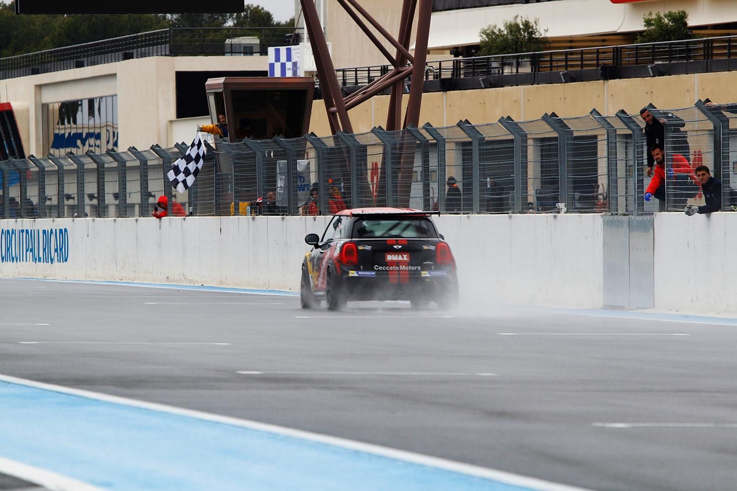 Alla bandiera verde Tobia Zarpellon ha provato ad approfittare della pole position seguito da Eduino Menapace e Francesco Neri. Alle loro spalle si è giocata una lotta serrata tra Torelli, Rangoni, Sandrucci e Filippo Maria Zanin. Ma alla fine sotto la bandiera a scacchi è stato Tobia Zarpellon (Ceccato Motors by C.Z. Bassano R.T.) a trionfare sul bagnato francese davanti ad un sorprendente Francesco Neri, sulla MINI John Cooper Works Challenge Pro di MINI Italia. Sul terzo gradino del podio sale Gabriele Torelli (MINI Milano by Porgetto E20) che guadagna punti importanti per la classifica generale.