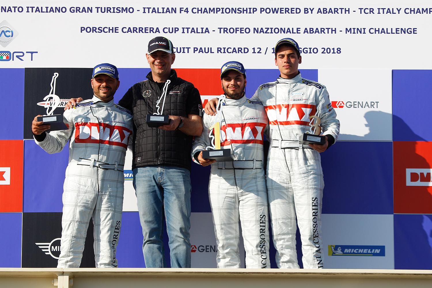 Tre su tre per Ugo Federico Bagnasco (Reggio Motori by Dinamic Motorsport) che, anche sul tracciato del Paul Ricard impone la propria legge tra le MINI John Cooper Works Challenge Lite. Sul podio anche Marco Santamaria (A.D. Motor by CAAL Racing) e l’ellenico Thomas Krasonis (Fimauto by V. Team Project). La classifica Lite viene completata da Alessandro Suerzi Stefanin (Autostar Group by Team Suerzi), Andrea Tronconi (Nanni Nember by Scuderia Angelo Caffi), Stefano Cordara, sulla vettura “press” di MINI Italia e da Andrea Bruno D’Angelo (Car Point by AB Corse).