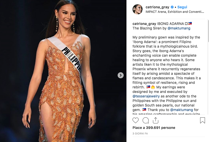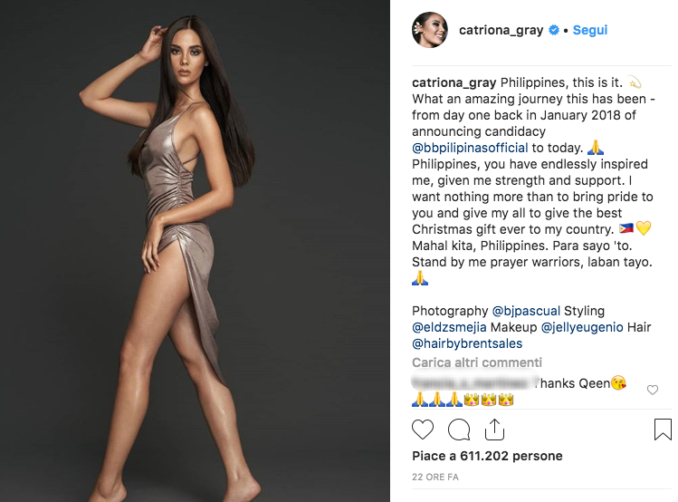 La più bella del mondo è Catriona Gray, Miss Filippine. L’edizione 2018 di Miss Universo è stata vinta da lei, una volontaria negli slum di Manila di 24 anni, con un fisico mozzafiato e uno sguardo da cerbiatta. La competizione si è conclusa a Bangkok e Catriona ha stravinto, battendo le colleghe Miss Sud Africa, Miss Venezuela, Miss Canada e Miss Vietnam.