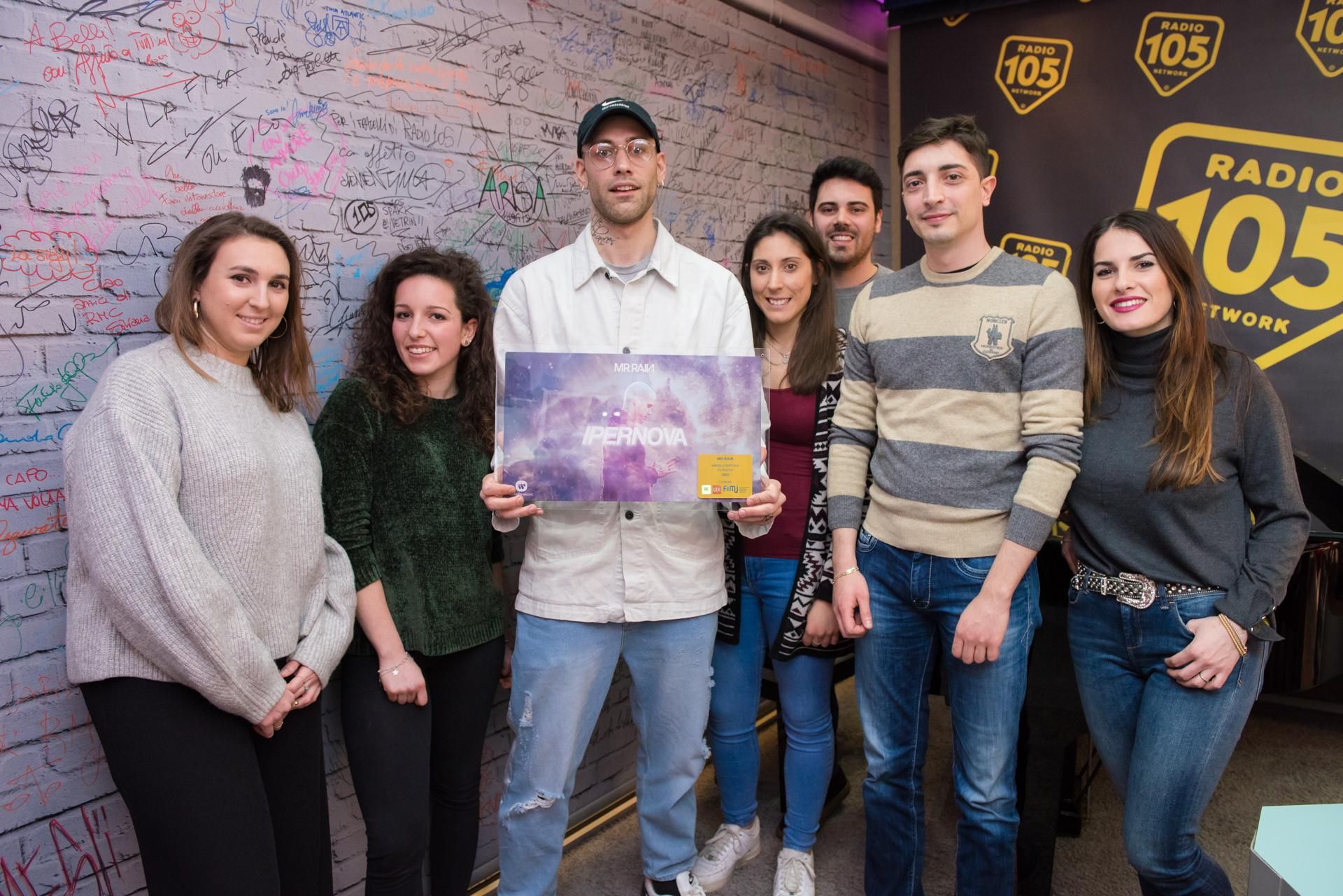 Mr. Rain ha ricevuto il Disco d’oro per “Ipernova”, il primo singolo estratto dal nuovo album del rapper e cantautore, “Butterfly Effect“, dopo aver raggiunto i 10 milioni di streaming su Spotify (#13 nella Top 50-Italia) e aver superato i 15 milioni di views su YouTube. Il rapper e cantautore è stato premiato da Max Brigante durante la puntata di 105 Stars di domenica 25 marzo. Ad assistere alla consegna c’erano anche alcuni suoi fortunati fan. Questa certificazione si aggiunge ai due Dischi di platino già ottenuti negli anni passati grazie ai singoli “Carillon” e “I grandi non piangono mai“.
