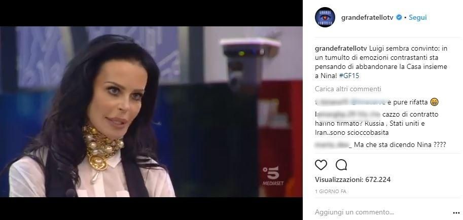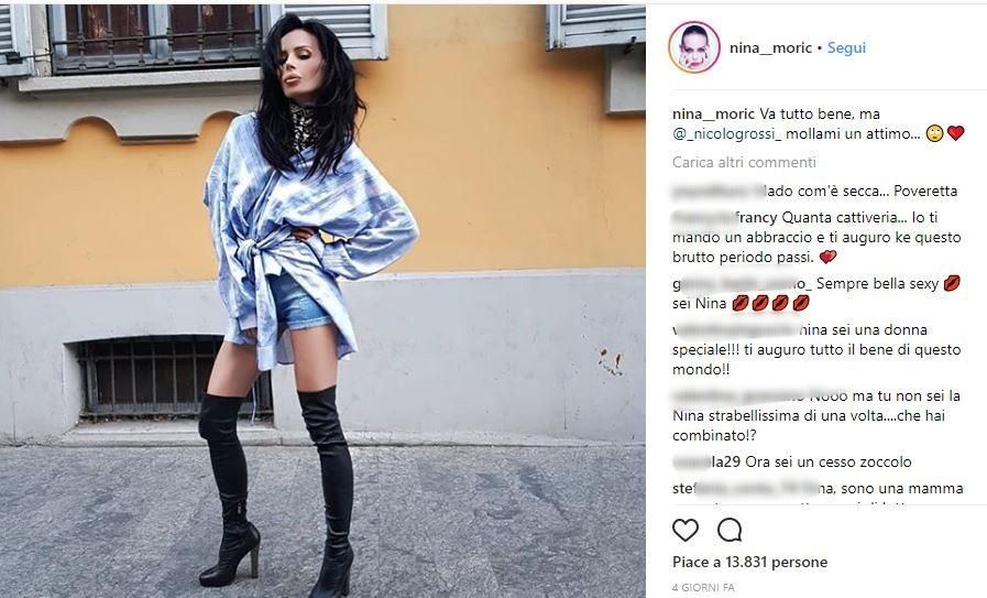 La showgirl è stata, infatti, attaccata su Instagram e si è trovata di fronte a una sfilza di commenti velenosi riferiti al suo aspetto. La causa scatenante è stata la sua apparizione al Grande Fratello 15. Durante il reality Nina ha incontrato Luigi Favoloso, per chiarire la loro situazione sentimentale.