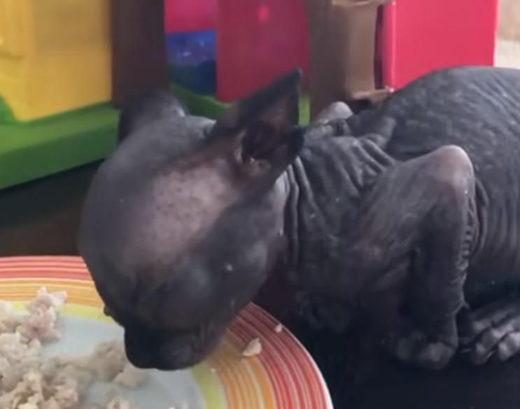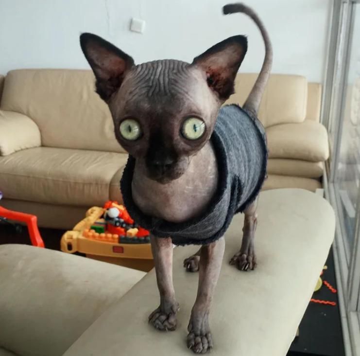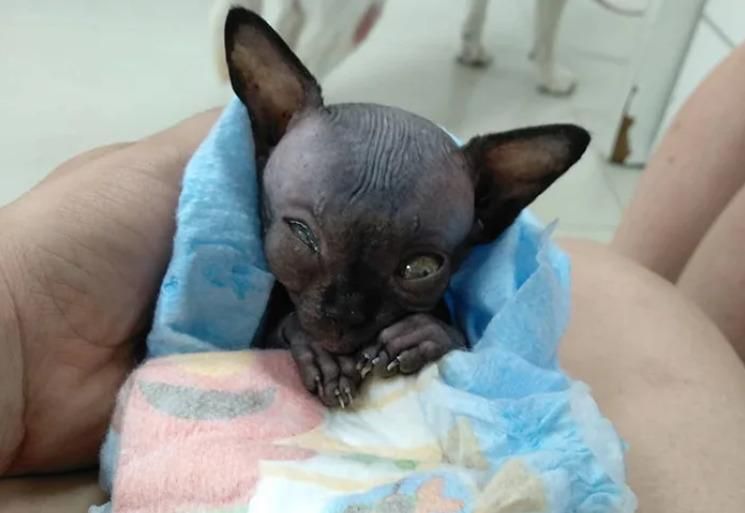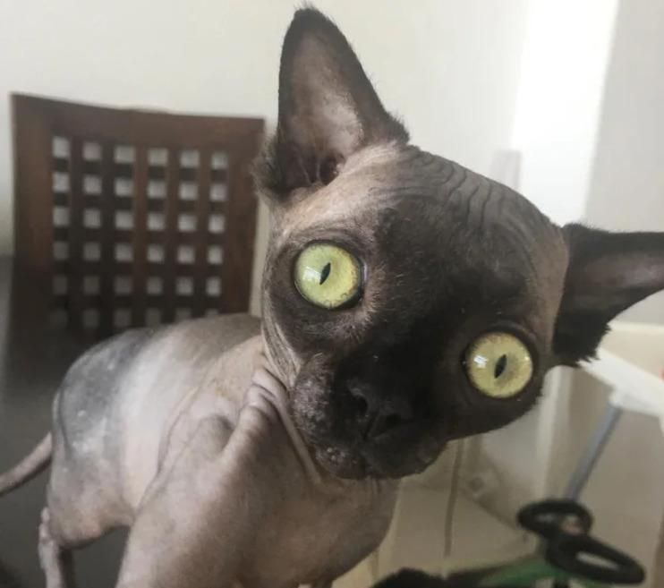 Questo dolce gattino shpynx è idrocefalo e assomiglia a un pipistrello