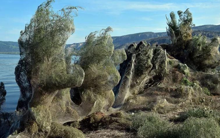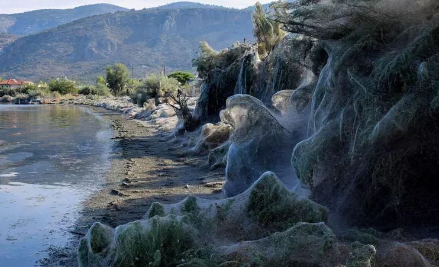 Si tratta di un fenomeno che ha luogo a Aitoliko, in Grecia, dove nei pressi di una laguna è possibile osservare un’enorme ragnatela che copre piante, palme e vegetazione.