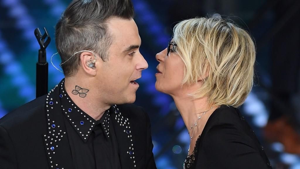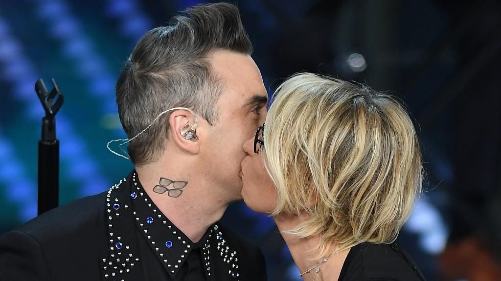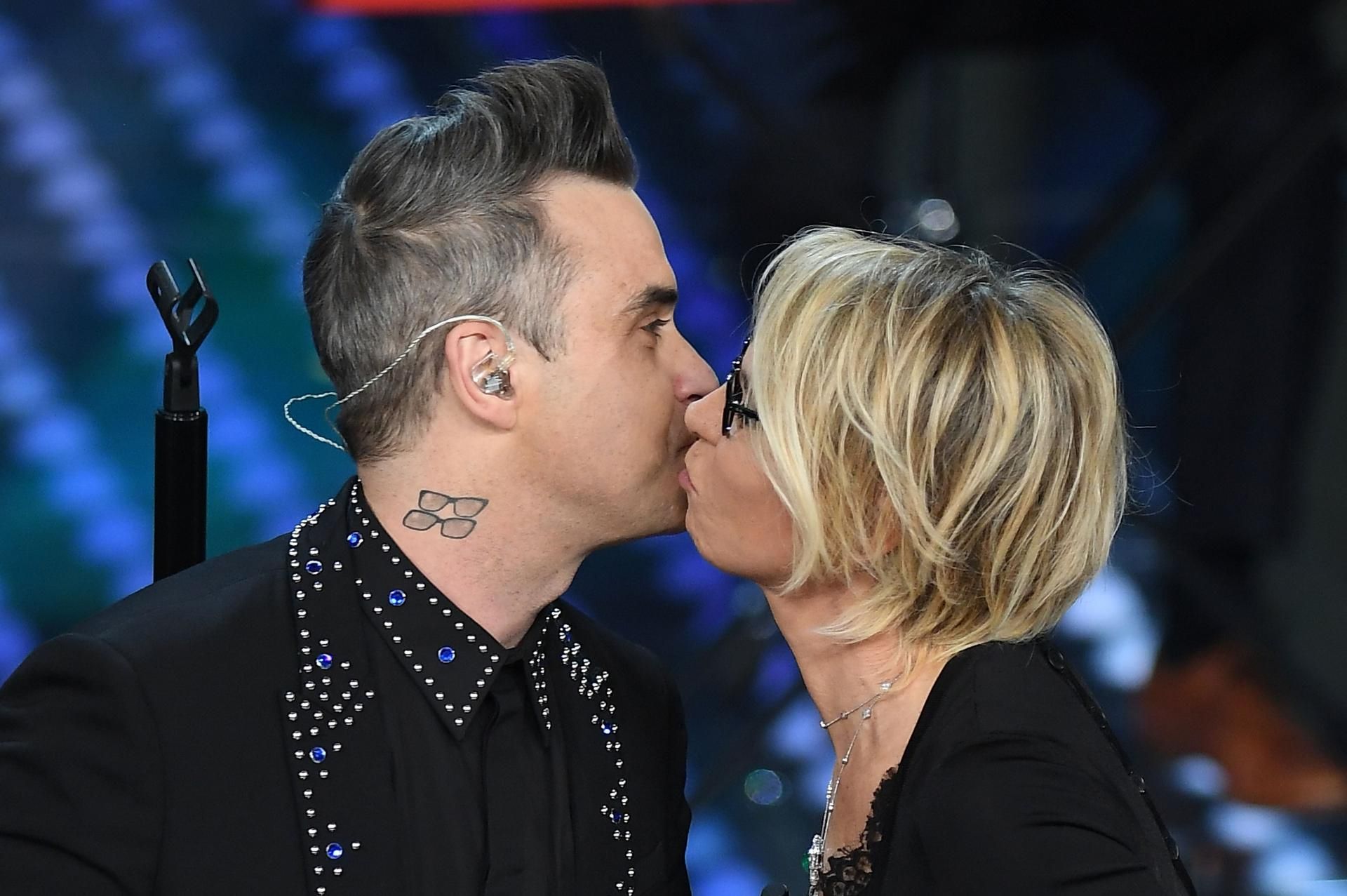 Robbie Williams bacia (anche) Maria De Filippi. Il clamoroso bacio di Robbie Williams a Maria De Filippi, una bacio a stampo, ma (o almeno così è sembrato) a “tradimento”, è stato uno dei momenti clou della seconda serata del Festival.