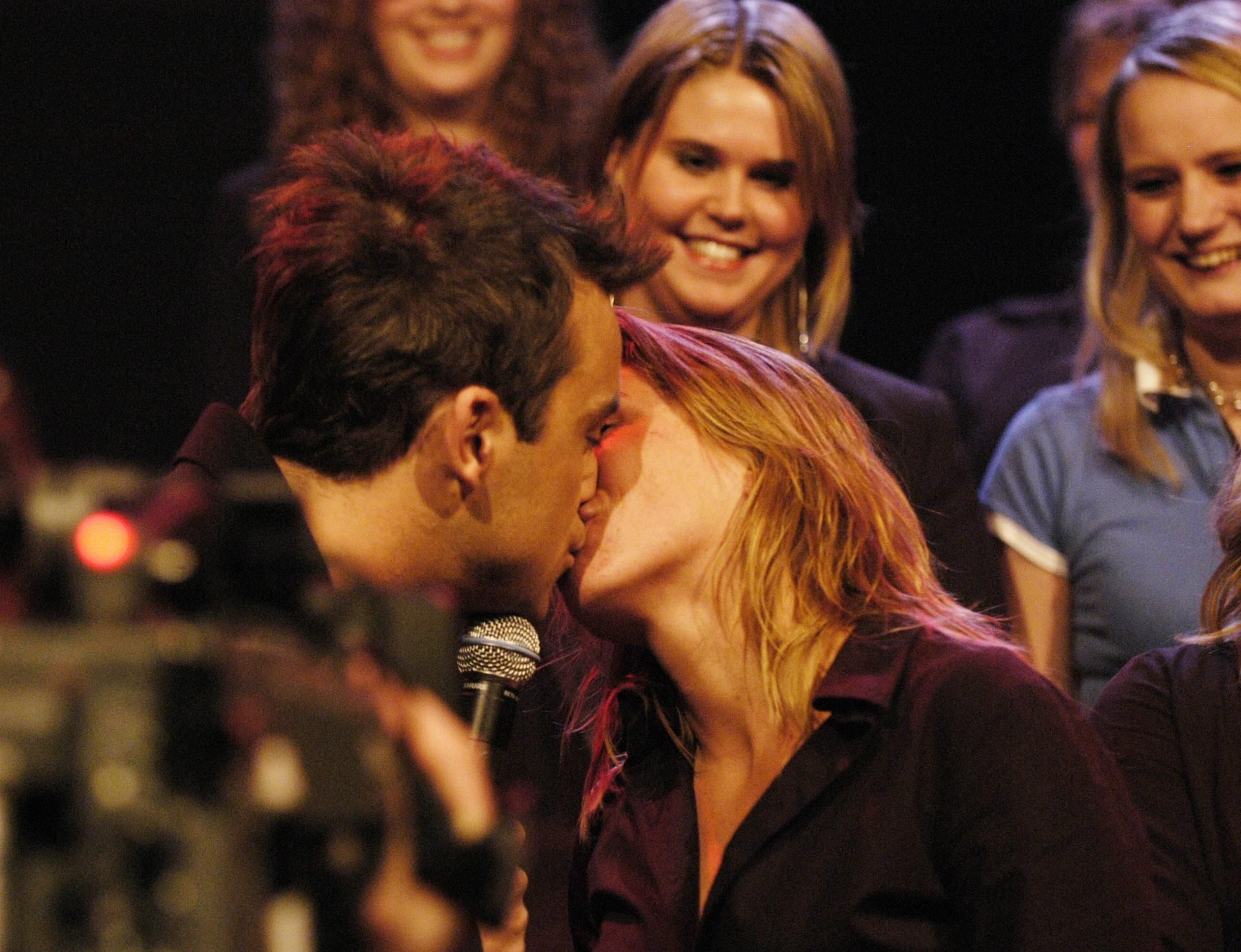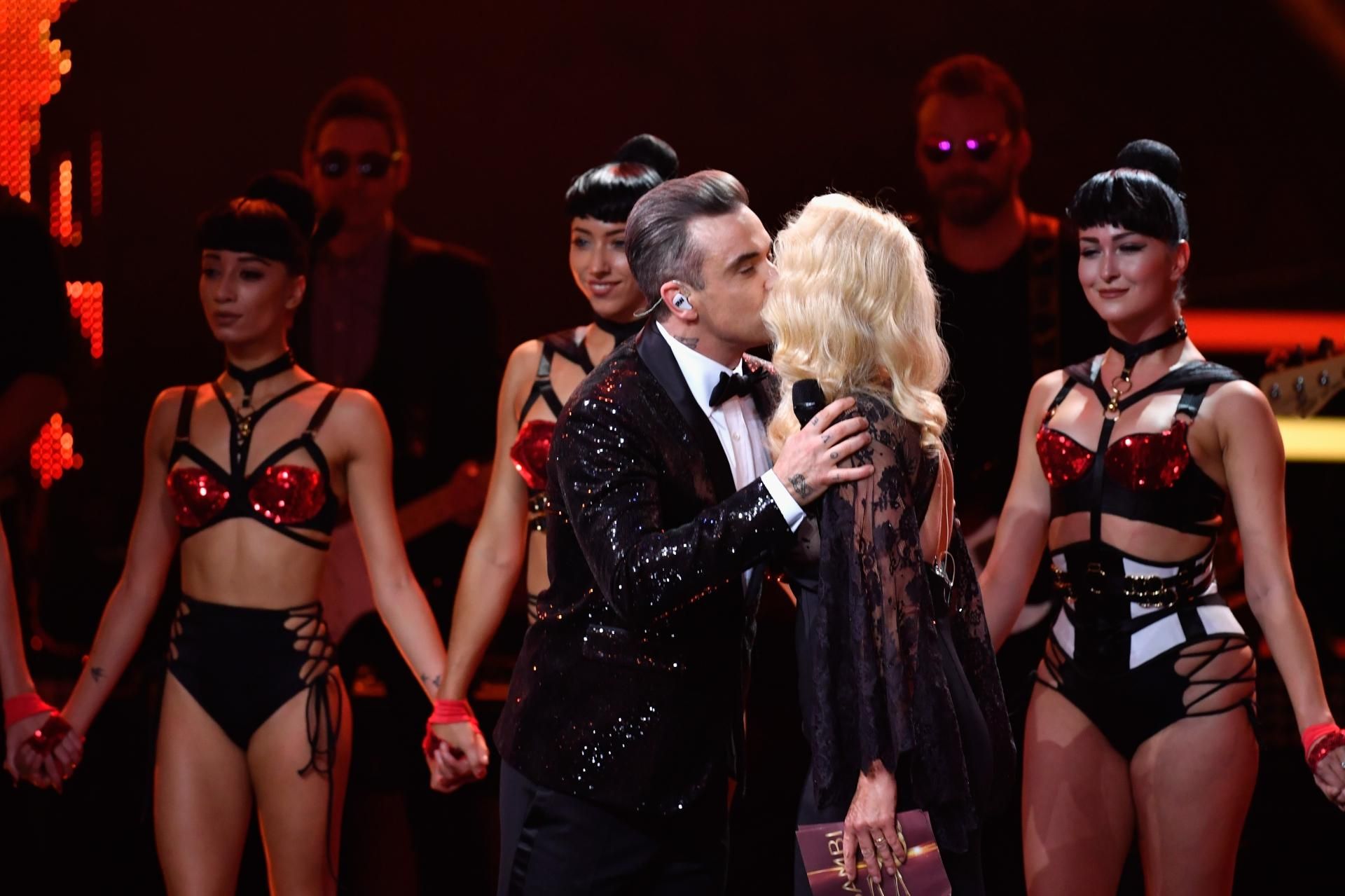 Proprio mentre la popolare conduttrice stava raccontando che l’ex Take That ha l’abitudine, al termine dei suoi concerti, di chiamare una fan sul palco per baciarla appassionatamente, lui le si è avvicinato con tutta la sicurezza di una vera rockstar e le ha stampato un bacio sulle labbra diventato immediatamente uno scoop.