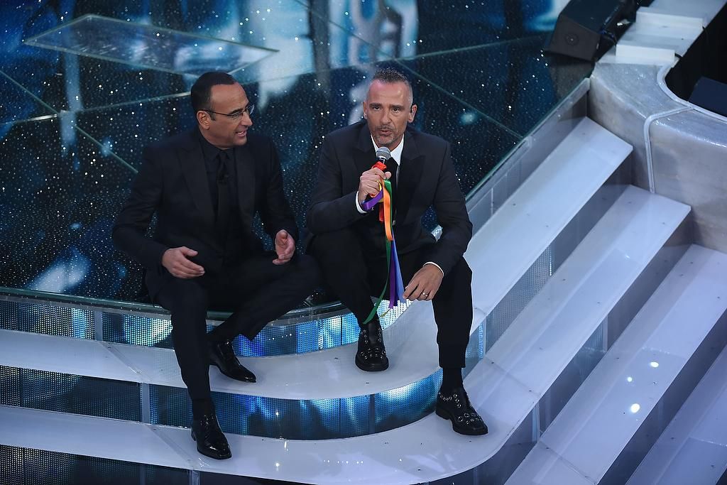 Eros e l’arcobaleno. Anche nella serata del mercoledì il tema forte resta quello delle unioni civili. Eros Ramazzotti dopo un’esibizione con alcune delle sua canzoni più famose, scende tra il pubblico e va a salutare la moglie prendendo da lei dei nastro arcobaleno: “I figli fanno famiglia e la famiglia è importante, qualsiasi essa sia. Questi nastri sono importanti”. Ma il momento di maggiore emozione è quello con Ezio Bosso, musicista dallo straordinario talento, affetto dalla Sla che sul palco porta tutta la sua arte.