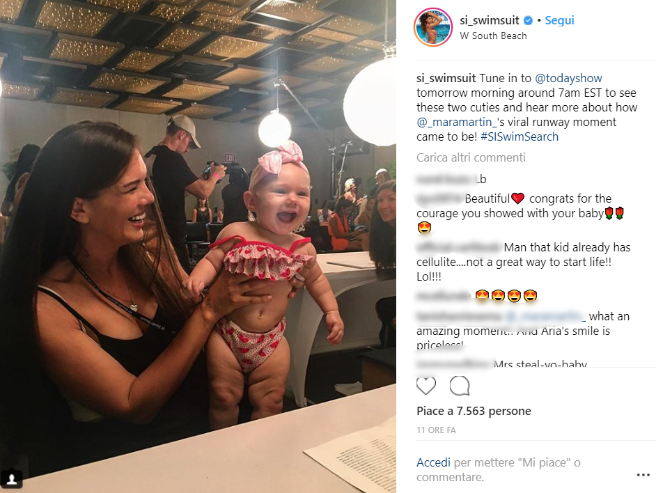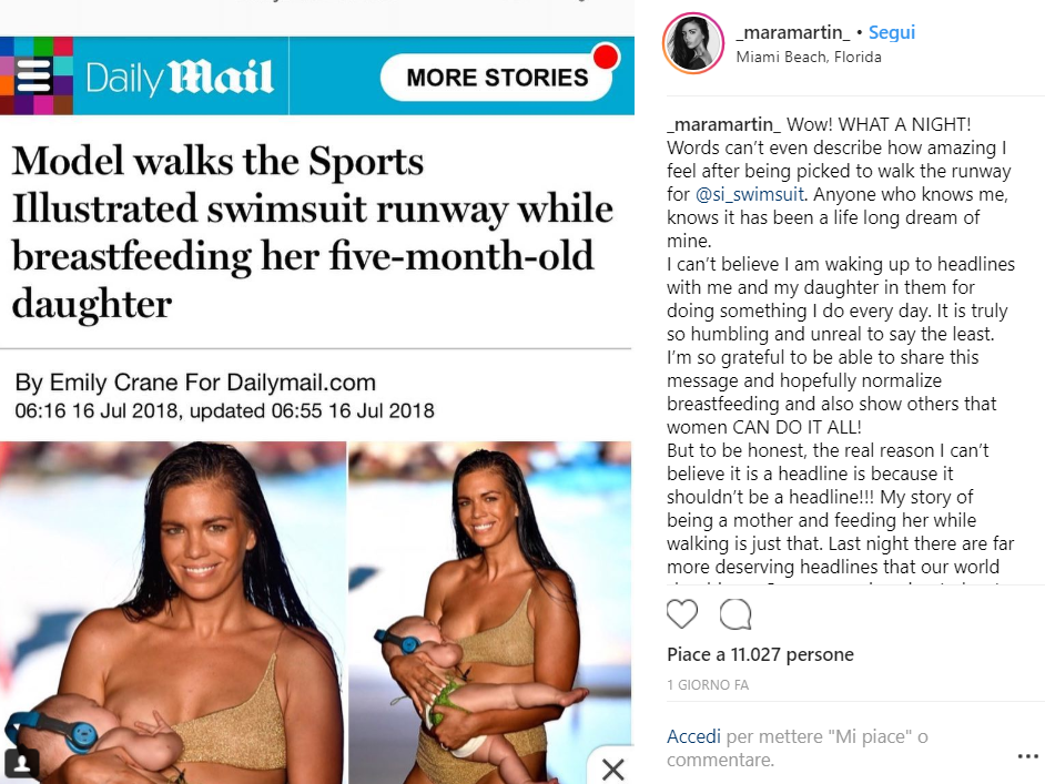 Sport Illustrated ha organizzato una sfilata al W Hotel South Beach di Miami in Florida dove hanno sfilato delle splendide ragazze in bikini. Ma tra tutte loro una in particolare ha lasciato il pubblico a bocca aperta. Si chiama Mara Martin ed è una modella amatoriale. È sicuramente bellissima ma non è per questo che ha colpito gli spettatori. La sua particolarità: ha sfilato sul catwalk mentre allattava la figlia Aria di soli 5 mesi.