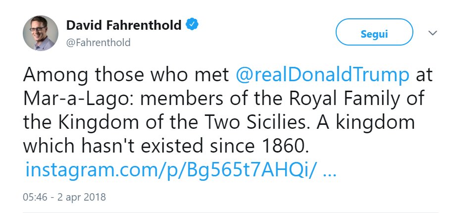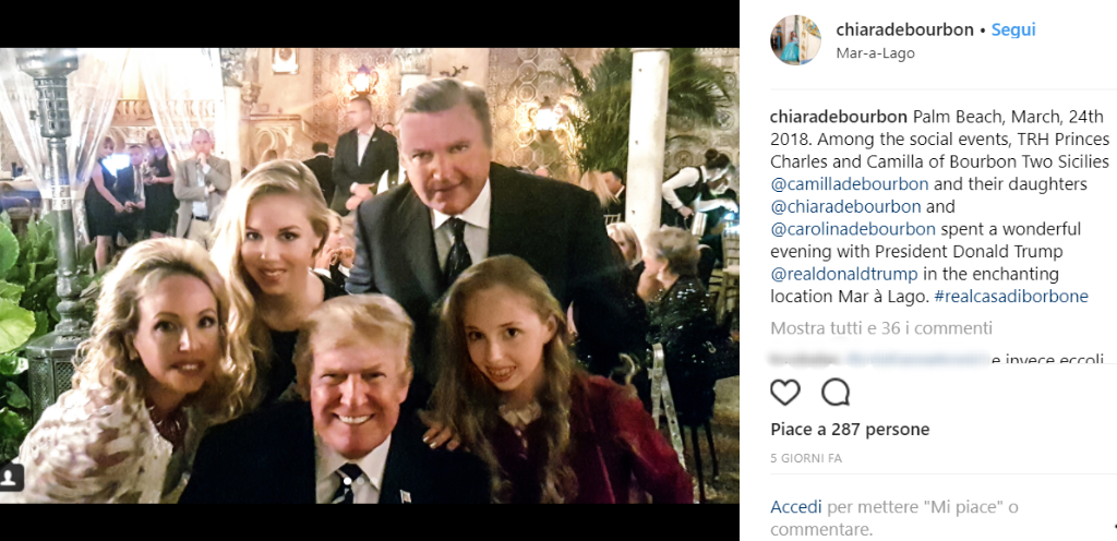Trump ha ricevuto la famiglia con tutti gli onori possibili e immaginabili. Si tratta pur sempre di reali, no? In realtà no perché i Borbone-Due Sicilie non regnano più dal 1860.
