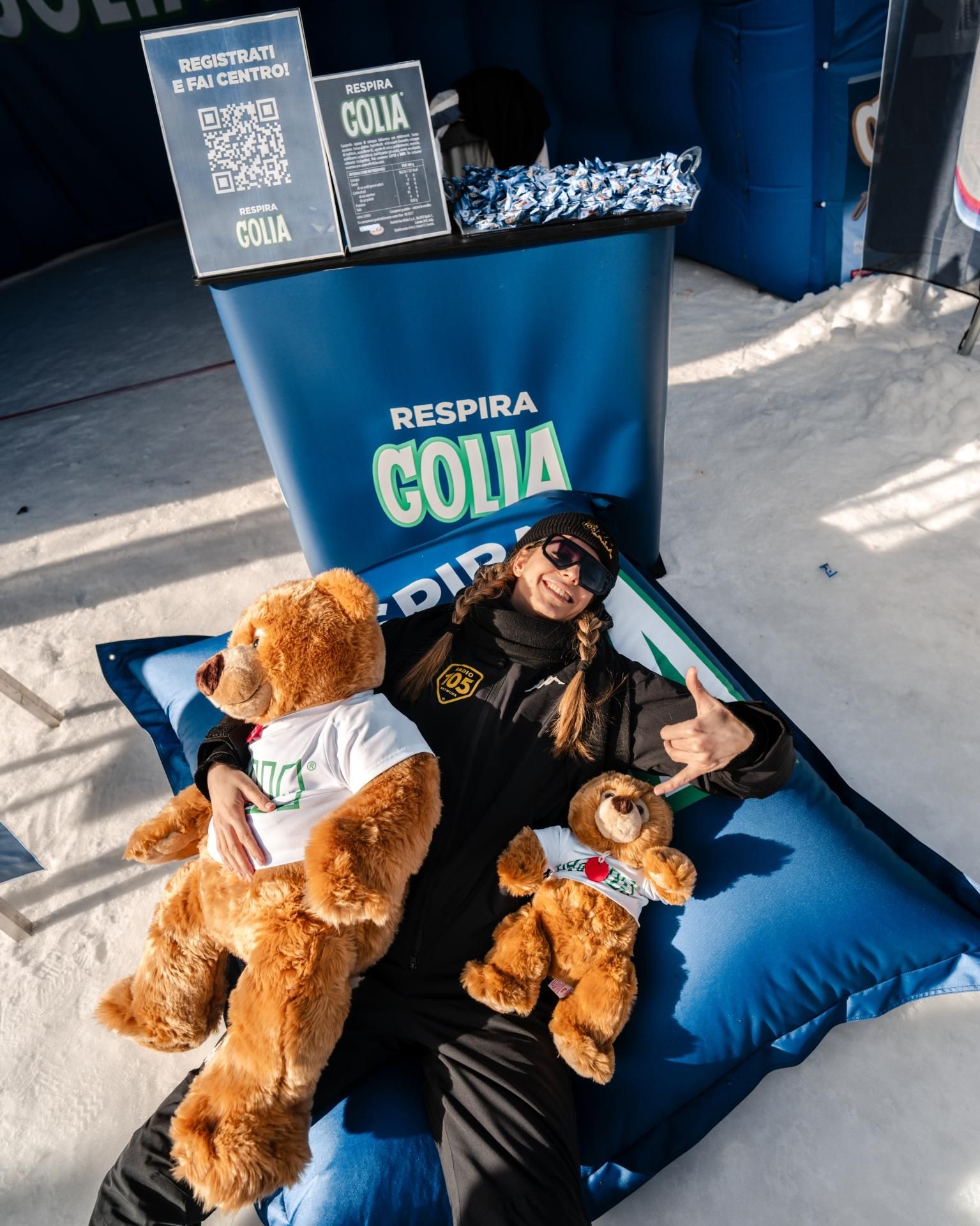Compagna fedele del tour: GOLIA ACTIV PLUS, la caramella dall’intenso gusto balsamico. Ha intrattenuto il pubblico del 105XMasters Village con tante attività allo stand: dal sampling di prodotto, all’amatissimo gioco del tiro a segno con la possibilità di vincere la desideratissima mascotte: l’orsetto di Golia. Una volta al giorno la sfida per vincere la versione maxi del peluche.