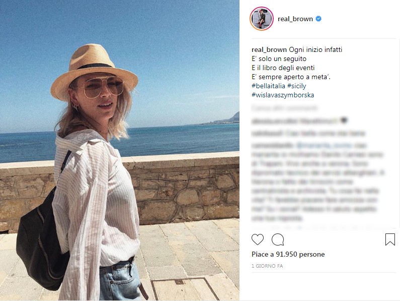 In una terza foto la vediamo serena e rilassata, con il mare sullo sfondo e il volto disteso. Il post è dedicato all’Isola Che Non C’è, prendendo in prestito le parole della canzone di Edoardo Bennato. “E ti prendono in giro se continui a cercarla. Ma non darti per vinto, perché Chi ci ha già rinunciato e ti ride alle spalle Forse è ancora più pazzo di te“.