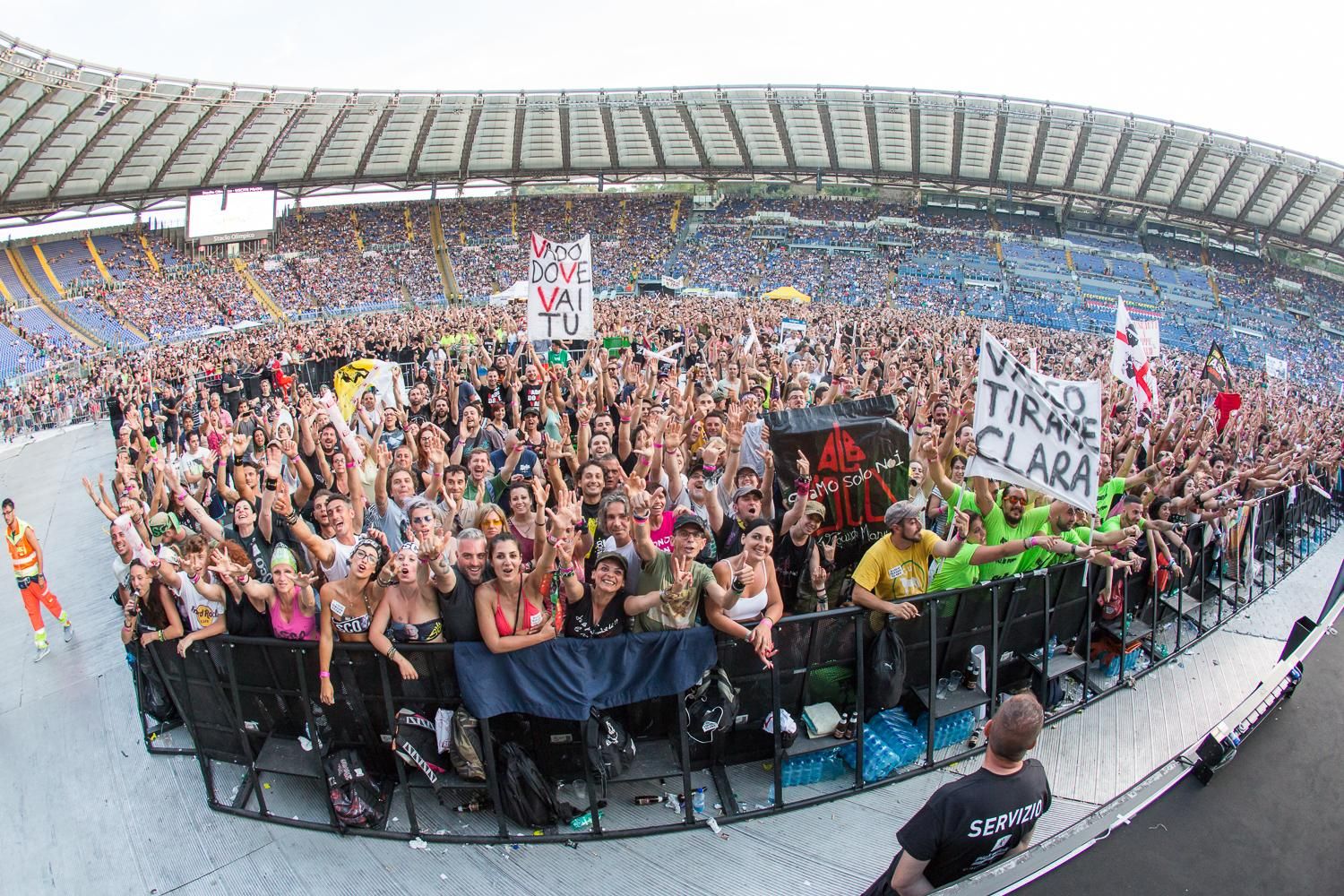 Tra poche ore, l’ultima notte di Vasco Rossi all’Olimpico. Proprio mentre l’esercito dei fan del Komandante attende l’inizio dell’ultimo atto del “Live Kom ‘016”, questa sera allo Stadio Olimpico di Roma, 105 lancia una nuova gallery dedicata alla terza serata nella Capitale, l’ennesimo trionfo. Anche ieri sera, infatti, Vasco ha dominato il palco senza risparmiarsi proponendo la corposa scaletta spalleggiato dalla sua super band formata dal Gallo Claudio Golinelli al basso, da Will Hunt alla batteria, e da Stef Burns e Vince Pastano alle chitarre.