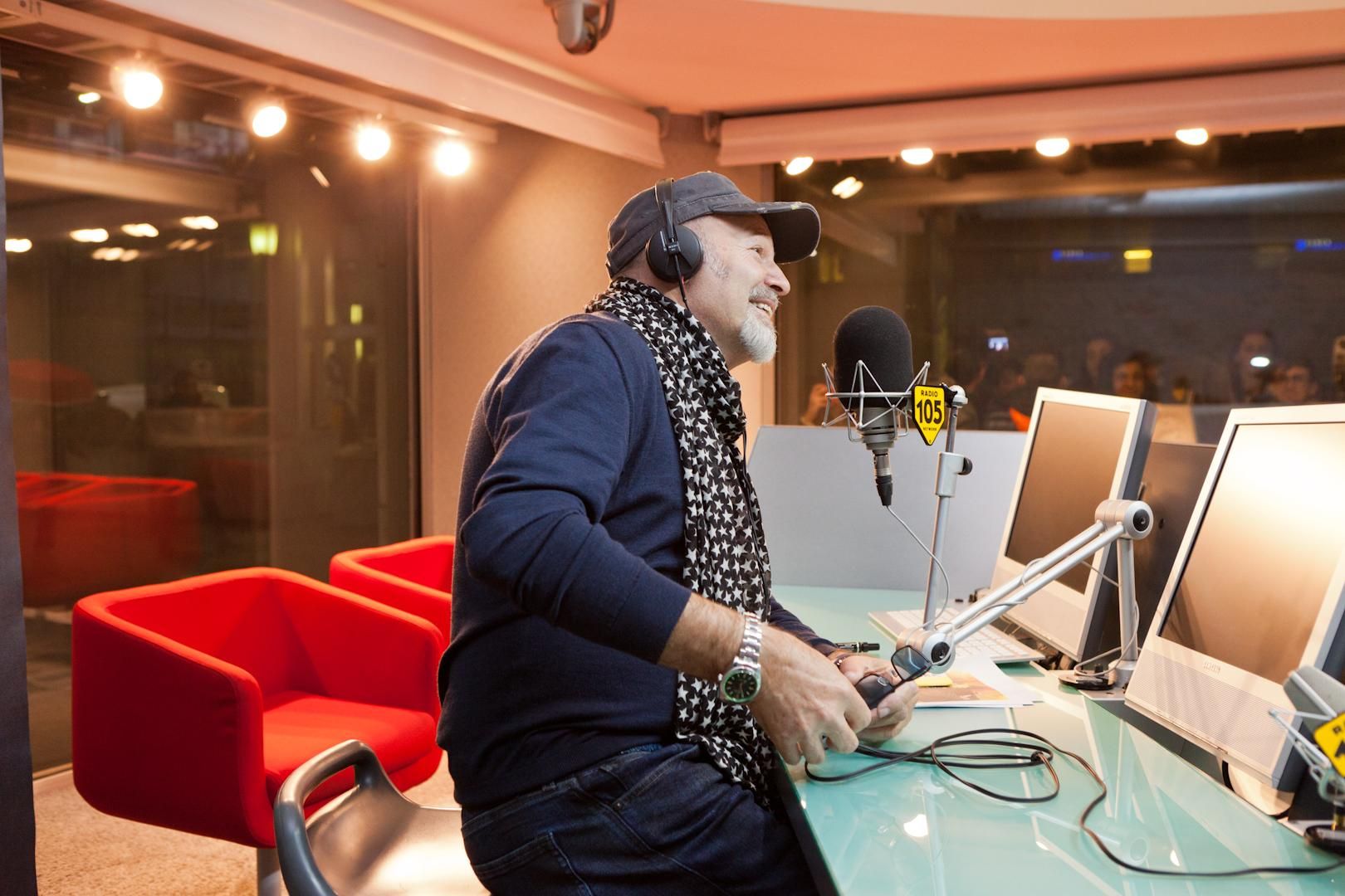 Vasco Rossi è arrivato pochi giorni fa, da Los Angeles. Si trova negli studi di Radio 105 per promuovere il film “Vasco tutto in una notte – LiveKom015”, basato sul concerto tenutosi allo stadio San Paolo di Napoli, nel 2015, e in distribuzione nelle sale italiane.