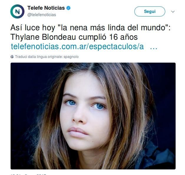 Iniziò la carriera di modella a soli 4 anni e quando ne aveva 6 fu soprannominata la “bambina più bella del mondo”. Sguardo angelico, occhi azzurrissimi e labbra carnose, ve la ricordate? Stiamo parlando di Thylane Blondeau, 16enne francese figlia della conduttrice televisiva e attrice Véronika Loubry e dell’ex calciatore Patrick Blondeau.