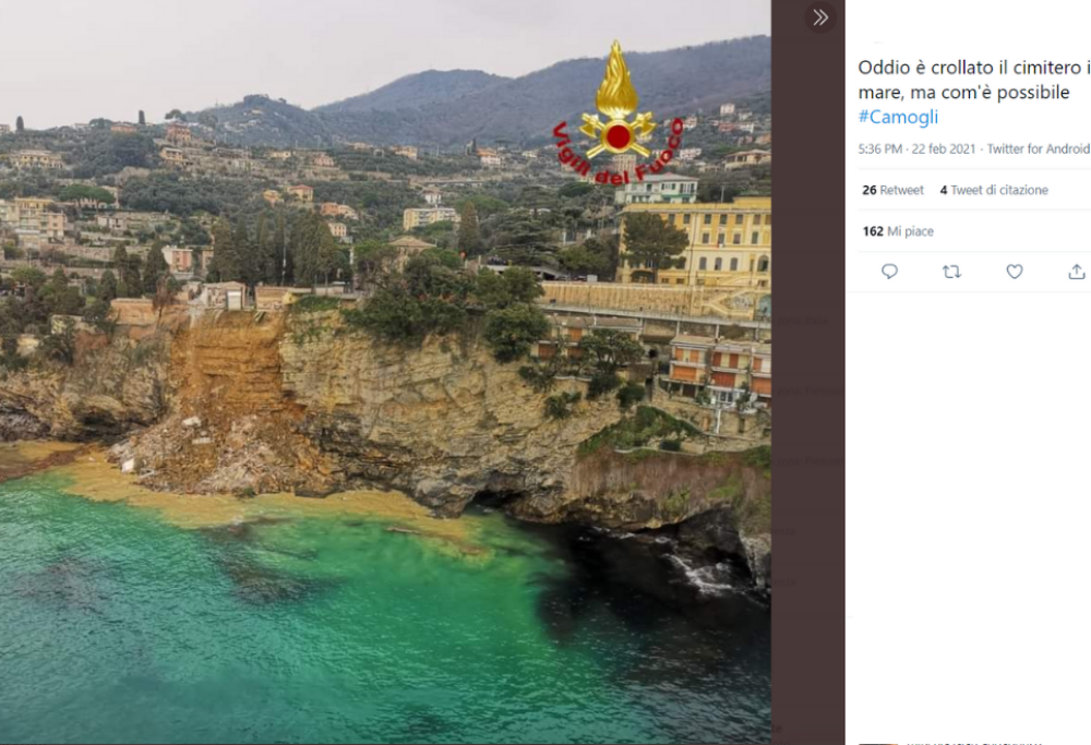 Sembrerebbe una barzelletta se non fosse che l’incidente è avvenuto davvero e ha destato molta preoccupazione, causando una serie di evidenti problemi. Nel pomeriggio di lunedì 22 febbraio è crollata una porzione di falesia in cima alla quale si trovava proprio il cimitero comunale di Camogli, in provincia di Genova. Questo ha provocato l’inarrestabile discesa di ben 200 bare verso il mare. Sono prontamente accorsi i vigili del fuoco di Genova e Rapallo insieme a squadre di sommozzatori e alla Protezione Civile, tutti impegnati a ripescare le salme e a mettere la zona in sicurezza.