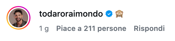 La reazione più inaspettata è però arrivata dall’ex marito Raimondo Todaro, padre della loro figlia Jasmine, che ha commentato semplicemente con una emoticon di una scimmietta che si copre gli occhi, segno di ironia e affetto allo stesso tempo. Nessuno si aspettava che proprio lui si esprimesse, dopo la fine della loro relazione lunghissima ma segnata da alti e bassi negli ultimi tempi. I due si sono lasciati definitivamente l’anno scorso, ma a quanto pare sono rimasti in buoni rapporti e hanno sempre parlato con grande affetto l’una dell’altro. La coppia ha anche una figlia, Jasmine, e proprio per lei sta cercando di mantenere un dialogo. Missione, per il momento, riuscita perfettamente come dimostra questo commento complice e divertito.