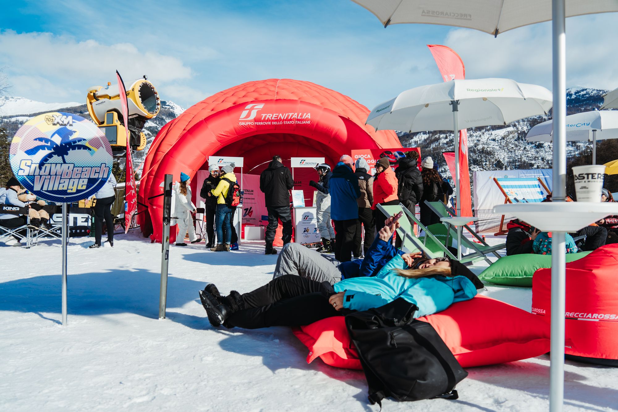 Sabato e domenica Frecciarossa, Intercity e Regionale di Trenitalia hanno messo a disposizione l’area relax, la postazione di ricarica dei cellulari, i burrocacao, scaldacollo, puzzle e fascette legasci brandizzate, cioccolata calda per tutti, il prezioso ed esclusivo servizio “In Pista con Trenitalia”: lezioni di sci e snowboard con maestri professionisti offerte gratuitamente dal brand (prenotazione via App di XMasters e visitando lo stand di Trenitalia (fino ad esaurimento posti)). E ancora il gioco del tiro a segno, una crew di snowbikers brandizzati Frecciarossa, Intercity e Regionale e tanto di più!