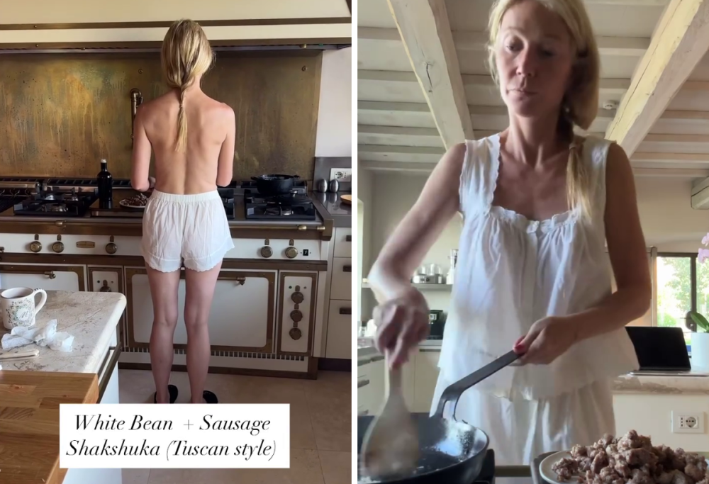 A testimoniare il suo nuovo approccio al cibo è stato un video postato su Instagram, in cui Gwyneth si mostra in una versione inedita: ai fornelli in topless, intenta a preparare una colazione proteica ispirata alla Toscana. L’attrice si trova infatti in Italia per una breve vacanza e ha deciso di condividere con i suoi follower un momento della sua routine mattutina.
