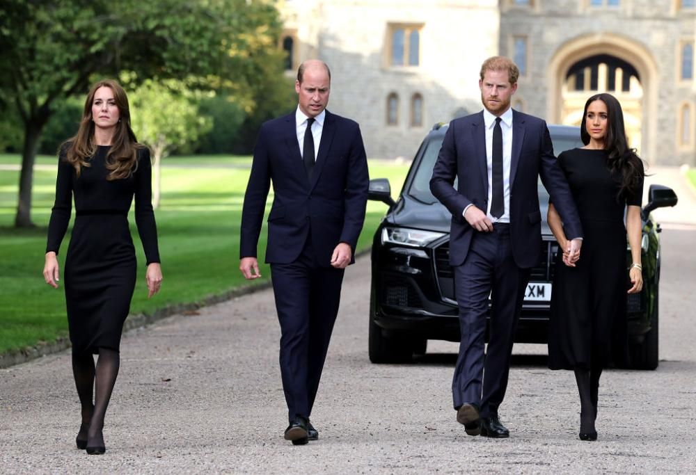 Il Principe William ha voluto che ci fossero anche Harry e Meghan al Castello di Windsor per incontrare la folla giunta per rendere omaggio alla regina Elisabetta II.