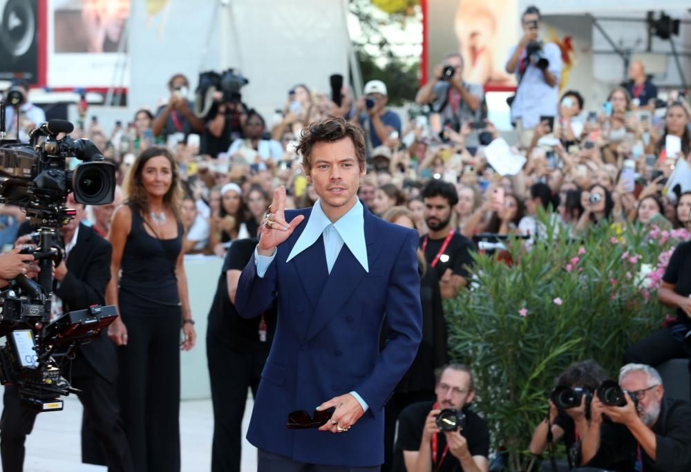 Una folla di fan in delirio ha atteso l’arrivo di Harry Styles a Venezia, dove è stato presentato fuori concorso il film con lui protagonista e diretto dalla compagna Olivia Wilde, “Don’t worry darling”. L’ex One Direction, reduce dalla pubblicazione del suo ultimo album “Harry’s House”, è stato travolto da un’accoglienza a dir poco calorosa e ha fatto letteralmente impazzire i presenti alla sesta giornata della 79esima Mostra del Cinema di Venezia. Styles, tra i divi più attesi al Lido insieme a Timothée Chalamet, ha risposto all’entusiasmo dei fan con altrettanto affetto, concedendosi ad autografi e, oltre a qualche selfie con i fortunati della prima fila, alle interviste di rito. Con indosso un completo blu elegante abbinato a una camicia dal colletto extra long e maxi occhiali da sole, sul red carpet della Sala Grande Harry Styles non si è tirato indietro dal raccontare le sue impressioni alla sua prima volta a Venezia e il suo rapporto con il cinema italiano. “È la prima volta a Venezia per me, non sapevo cosa aspettarmi, sono colpito da tanto entusiasmo“, ha raccontato la popstar, come riportato dall’ANSA. Candidandosi a un film del regista italiano Paolo Sorrentino, che evidentemente ammira, ha aggiunto: “Mi piacerebbe lavorare con Paolo Sorrentino“.
