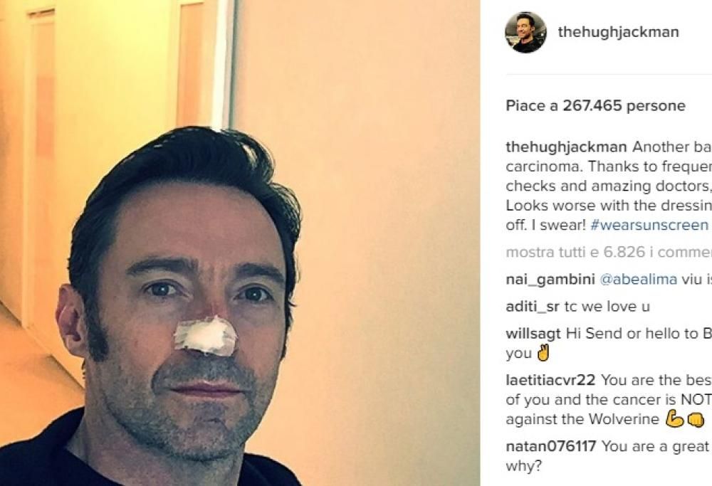 “Un altro carcinoma basocellulare. Grazie ai controlli frequenti e ai medici eccezionali, tutto è andato bene. Con il cerotto sul naso sembra peggio di quello che è in realtà, lo giuro!”. Questo il messaggio con cui l’interprete di Wolverine ha tranquillizzato i quasi 10 milioni di fan che lo seguono, ai quali, tra l’altro, lancia un monito solenne per prevenire le malattie della pelle attraverso l’hashtag #usatelacremasolare!.