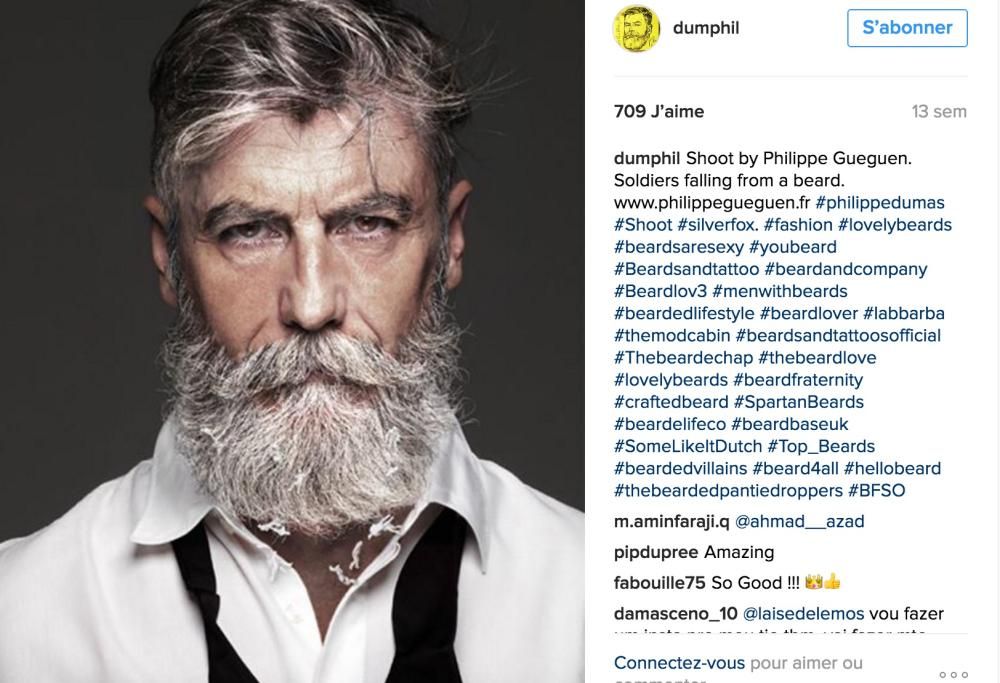 Se pensate che si tratta di un modello ormai affermato da anni e che vive del successo riscosso in passato vi sbagliate perché la sua carriera è appena iniziata. Prima di fare il modello Dumas lavorava nel modo dell’industria cinematografica da ben 20 anni, ma come location manager. Chissà, forse se la compagnia nella quale lavorava non fosse fallita, Dumas non avrebbe mai intrapreso questa carriera. Fatto sta che, rimasto senza lavoro, non si è dato per vinto, anzi ha deciso di coronare il sogno della sua vita, fare il modello appunto! Così ha deciso di creare una nuova immagine di sé, facendosi crescere una lunga barba bianca e degli altrettanto lunghi baffi all’insù.