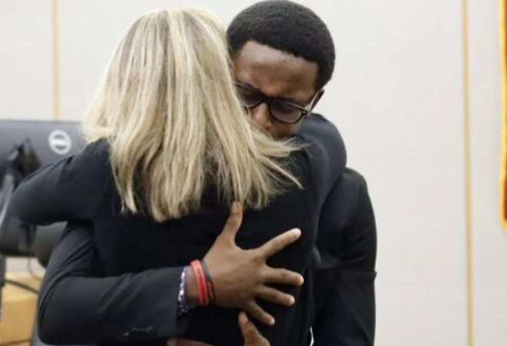 In aula era ovviamente presente il fratello della vittima, Brandt Jean, il quale ha sorpreso tutti con una reazione inaspettata: il ragazzo, infatti, dopo aver chiesto il permesso al giudice, si è avvicinato all’ex poliziotta condannata e l’ha abbracciata, dicendole queste parole piangendo: “Ti perdono e non ti auguro nulla di male, non vorrei nemmeno che tu andassi in prigione perché questo è ciò che Botham avrebbe voluto”.
