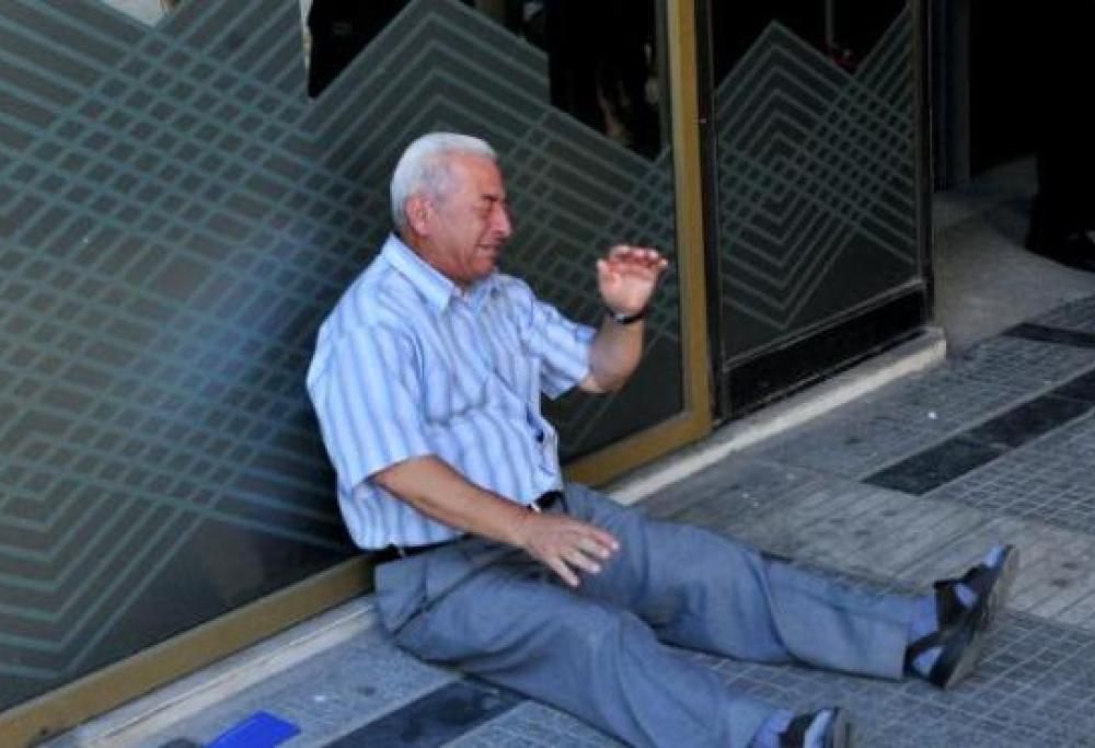 L’uomo accasciato a terra e in lacrime si chiama Giorgos Chatzifotiadis e la sua immagine di disperazione è la sintesi dell’attuale crisi greca. L’anziano signore, 77 anni, non riuscendo a prelevare i soldi della pensione dalla banca non è riuscito a trattenere lo sconforto e si è lasciato cadere in un pianto commovente.