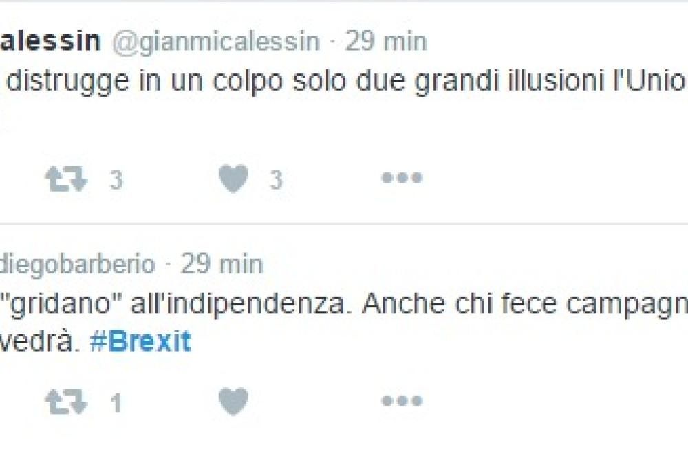 Le interviste e i comunicati lasciano intendere la presenza di opinioni e umori anche molto diversi tra loro, ma sono soprattutto i social network ad evidenziare la netta divisione tra le reazioni dei sostenitori del Brexit e quelli del Brimain. Come sempre, non manca chi sdrammatizza con una sottile ironia.
