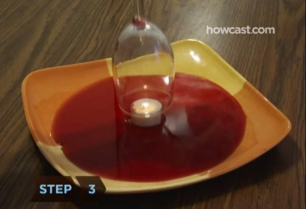 Tutto quello di cui avete bisogno è una candela, un piatto, un bicchiere e del vino. Sarà sufficiente porre la candela in mezzo al piatto, accenderla, versare del vino sul piatto e porre infine il bicchiere capovolto sopra la candela: per l’effetto sottovuoto che si viene a creare, il bicchiere risucchierà il vino al suo interno. A questo punto basta capovolgere piatto e bicchiere et voilà. La scienza ha fatto il suo corso.