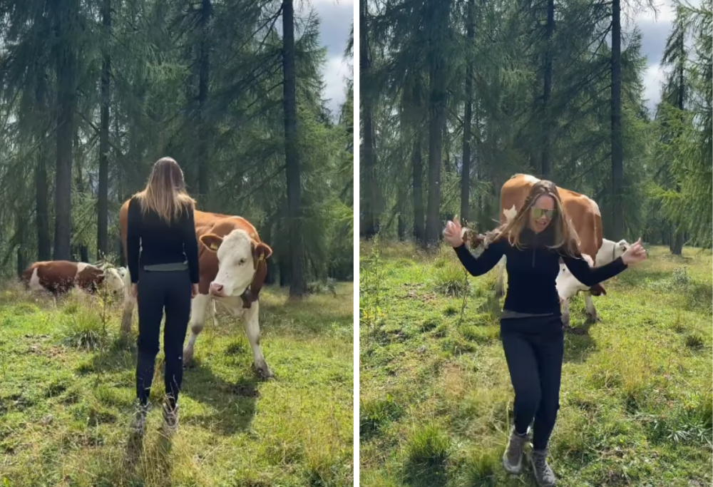 Un imprevisto con una mucca durante la vacanza tra le Dolomiti: Ilary Blasi protagonista di un divertente video virale
