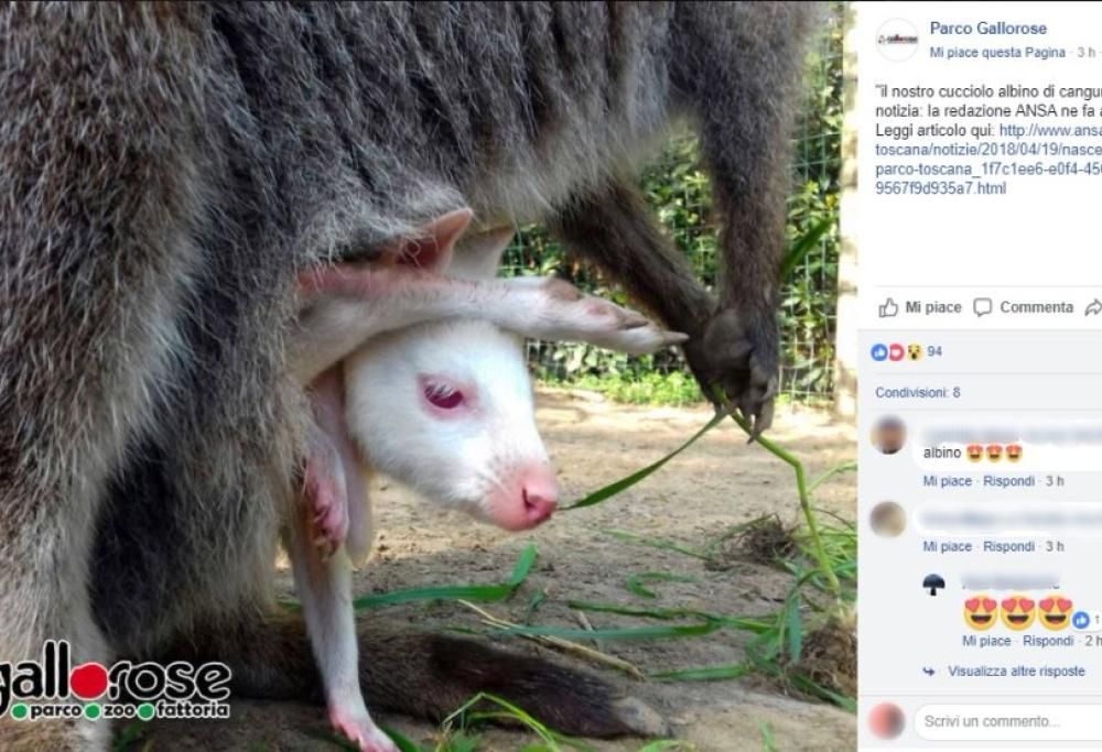 Nel parco faunistico Gallorose di Cecina è nato da pochi giorni un esemplare di canguro albino. È un fenomeno molto raro ma può verificarsi in ogni specie animale