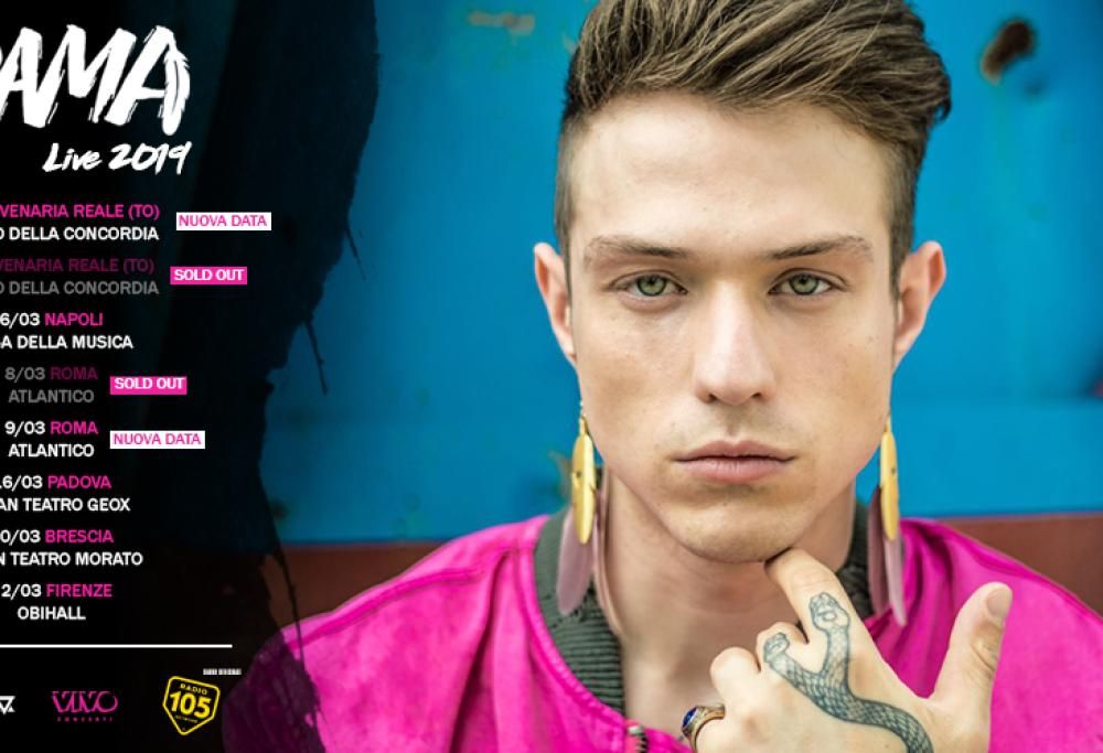 Irama non si ferma davvero più. Da pochi giorni sono in vendita le date del suo Live 2019 Tour (con Radio 105 come partner ufficiale) e già alcune date, quella di Roma l’8 marzo all’Atlantico e quella di Torino, 1° marzo, al Teatro della Concordia di Venaria, hanno registrato il tutto esaurito. Per questo motivo, Irama ha già annunciato che gli eventi in queste due città raddoppiano: il vincitore di Amici si esibirà a Venaria anche il 28 febbraio e a Roma anche il 9 marzo.