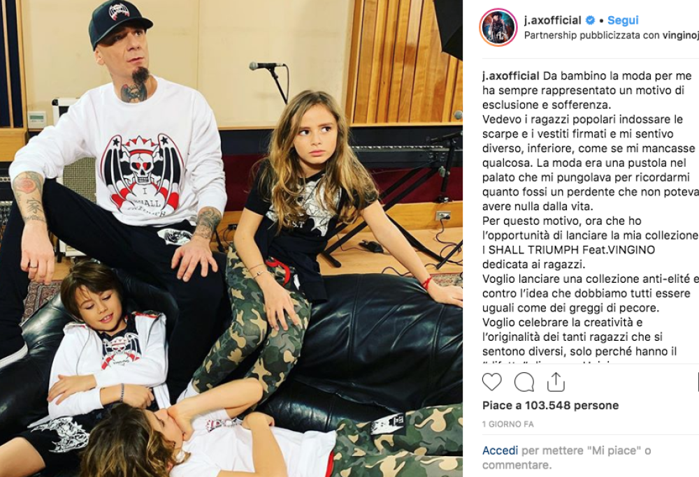 Insieme all’annuncio, J-Ax ha postato una foto che lo ritrae insieme ad alcuni giovani modelli mentre indossano i capi della sua collezione, prodotta, come annunciato, dall’azienda Vingino, noto brand di abbigliamento fondato nel 2001 nei Paesi Bassi.