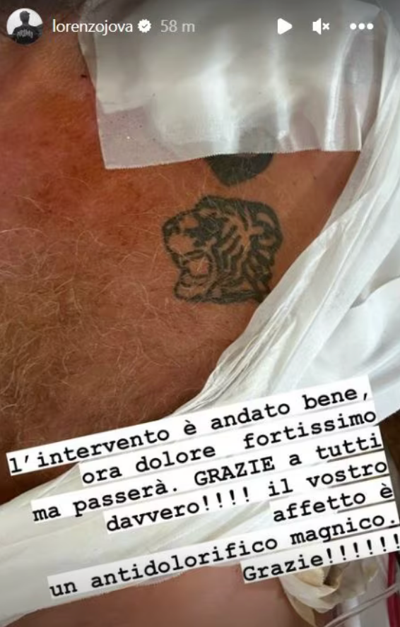 “Dolore fortissimo ma passerà“, ha detto ai suoi fan. Aggiungendo: “L’intervento è andato bene, ora dolore fortissimo ma passerà. Grazie a tutti davvero. Il vostro affetto è un antidolorifico magnifico. Grazie“. Tra le foto che ha pubblicato nelle storie ce n’è una che raffigura la tigre che si è fatto a suo tempo tatuare sul petto, presente vicino alle ferite, ora coperte da bende e fasciature, come a dire che il cantante non ha intenzione di mollare.