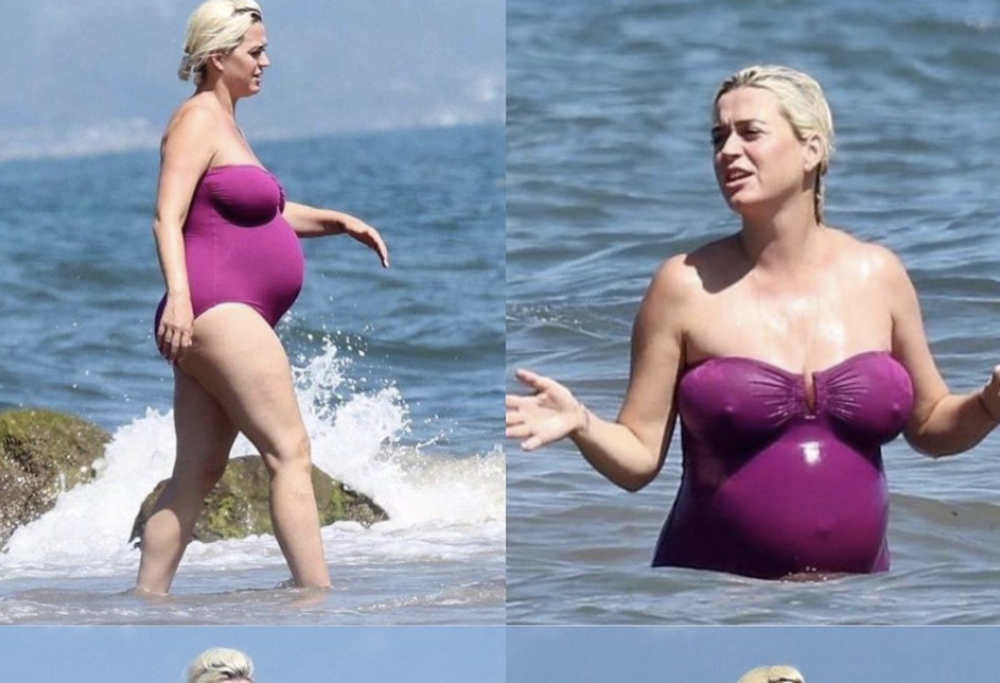 Katy Perry si sta godendo l’ultimo mese di gravidanza al mare, dove, con un costume intero viola, mostra il suo pancione ormai al nono mese di gravidanza.