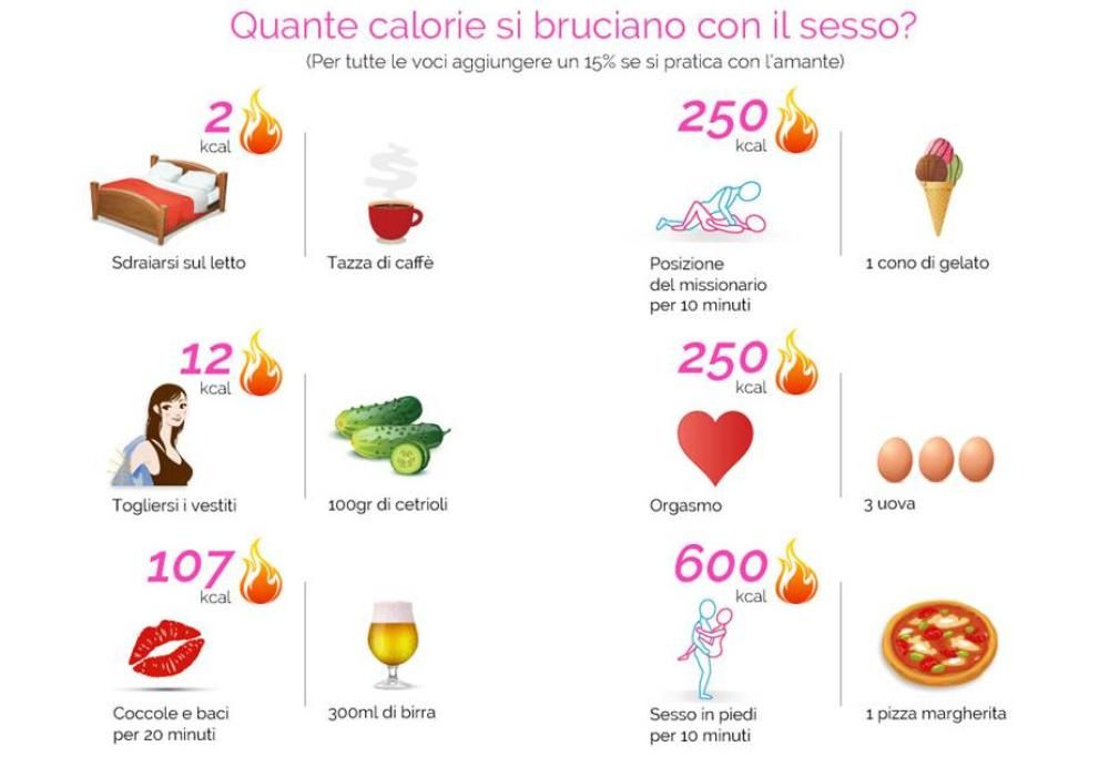 250 calorie vengono bruciate quando raggiungerete il picco del piacere: potrete così scegliere se mangiarvi un altro gelato o farvi una frittata con 4 uova.