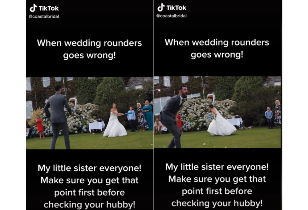 La sorella non si è fatta scappare l’opportunità di riprendere la scena e condividerla su TikTok non appena gli sposini sono tornati dal viaggio di nozze per sfidarli apertamente sui social a una battaglia di views:”Mia sorella era irremovibile sul fatto che avremmo giocato tutti insieme, quindi è quello che abbiamo fatto” – ha raccontato la sorella della sposa al Mirror – “Lei e il marito sono entrambi molto competitivi sui social. Al loro ritorno dalla Grecia li ho sfidati così. Voglio che il video faccia più visualizzazioni possibili”. Riceveranno più like le foto della luna di miele o la scena esilarante della battuta dritta ai genitali?